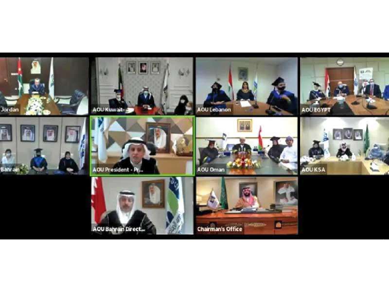من جهته، قال مدير الجامعة العربية المفتوحة في الكويت د. نايف بجاد المطيري: «نتشرف اليوم ونحن نبارك تخريج كوكبة من طلبة الجامعة العربية المفتوحة في الكويت والذين تحدوا صعاب الظروف، وأصروا على المضي قُدما في مسيرتهم المباركة»، مضيفا: «لا يسعني إلا أن أشكرهم لما قدموه من الجد والاجتهاد والمواظبة في طلب العلم، مقدّرين الفرصة الثمينة التي منحتها لهم الجامعة لمتابعة تحصيلهم العلمي بنظام التعليم الإلكتروني، وهو ما يستحق الثناء والتقدير».وأضاف المطيري: لا يسعنا في هذا المقام إلا تقديم الشكر لرئيس الجامعة د. محمد الزكري على مساندته وتشجيعه ولأعضاء هيئة التدريس وعمداء البرامج الأكاديمية، حيث قدّموا جميعا كفاءة مميزة في تفعيل خصائص التعليم الإلكتروني لضمان وصول المادة العلمية إلى جميع الطلبة بكل سلاسة وأمانة.وتابع: فشكرا لرئيس مجلس أمناء الجامعة صاحب السمو الملكي الأمير عبدالعزيز بن طلال على متابعتكم الحثيثة وتقديم الدعم الكبير لنجاح مسيرة الجامعة في ظل جائحة كورونا وتداعياتها استطعنا الإنجاز والتميز.أول جامعة عربية تطبّق التعليم عبر الإنترنت