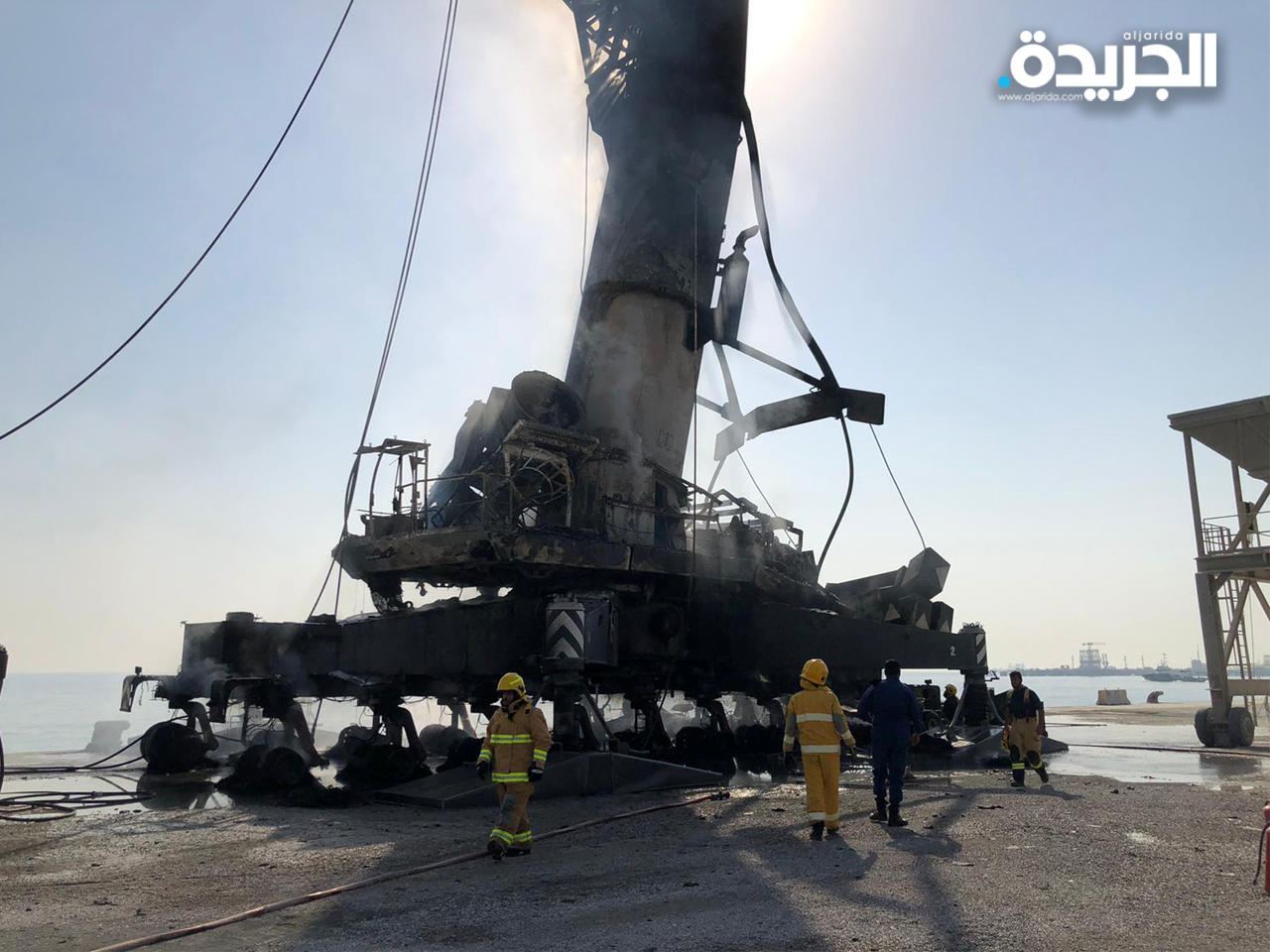 من جهتها، أعلنت مؤسسة الموانئ أن الحريق اندلع في رافعة جسرية متحركة تابعة لإحدى شركات المناولة أثناء تفريغ صلبوخ على الرصيف السابع في ميناء الشعيبة، حيث تمّت السيطرة عليه دون تسجيل إصابات بشرية.