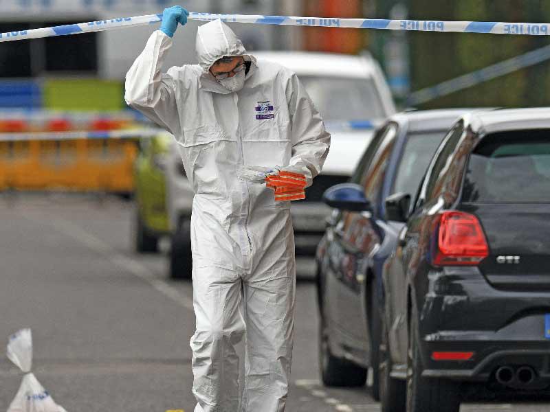وأظهرت تسجيلات مصورة بثتها شبكات التلفزة البريطانية مناطق واسعة من وسط المدينة مغلقة، بينما انتشر عناصر شرطة ارتدوا بزات مخصصة لغرض التحليل الجنائي.