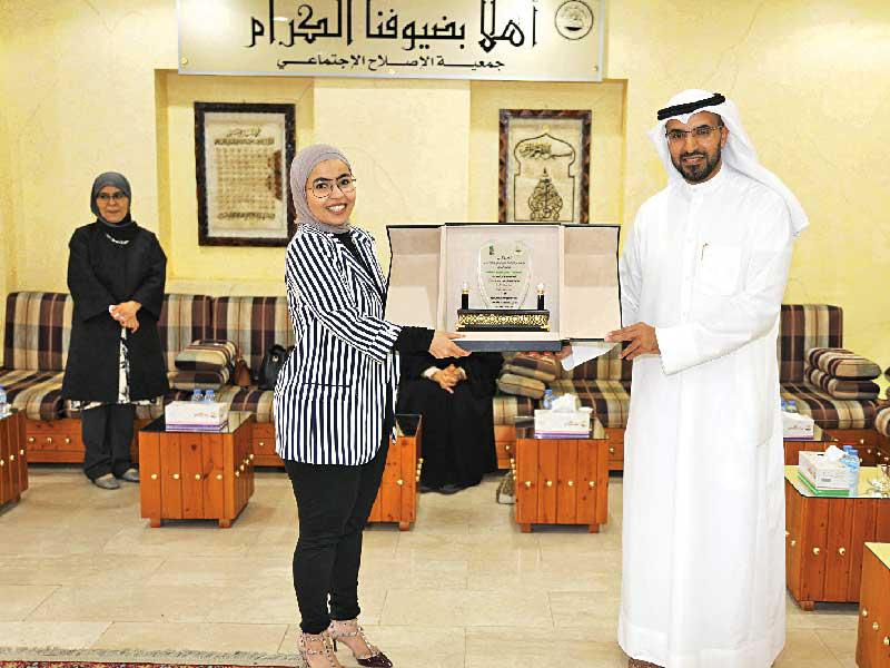 وبهذه المناسبة، أشاد رئيس جمعية الإصلاح الاجتماعي د. خالد المذكور، في تصريح صحافي، بما قدمته المخترعة الشهاب، معرباً عن فخره واعتزازه بلقائها والاستماع لتجربتها الإيجابية والإنجازات التي حققتها.من جانبها، شكرت المخترعة الشهاب جمعية الإصلاح و"نماء" على هذا التكريم، مشيرة إلى أن هذا الانجاز سيخدم الكويت.
