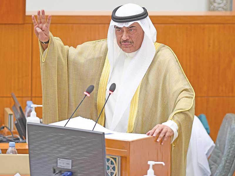 وشكر الخالد الاطفاء على ايصال الادوية للمرضى في منازلهم، «ونحن استعنا بطواقم طبية من كوبا وباكستان والاردن بهدف دعم البنية الصحية، وأضعنا فرصا كثيرة في الحصول على طواقم طبية من العالم بسبب الاجراءات، والفريق الباكستاني يصل الكويت قريبا».واستدرك: «لدينا عشرة مراكز فحص لفيروس كورونا، ومراكز متنقلة، وتحصلنا على إشادة عالمية بطرق العلاج والتعامل مع كورونا، ونحن مازلنا في الأزمة، ولا توجد دولة في العالم مهما كانت قدراتها لم يصبها الفيروس، وعندما يقول الكندري لماذا لم تكن إجراءاتنا في التعامل مع كورونا كنيوزلندا، وأنا أؤكد أن اجراءاتنا افضل منها وفقا للأرقام».وأشار الى أن العالم لايزال في خضم ازمة كورونا، ولا لقاح صدر حتى الآن، «واتخذنا خطوات استباقية للحصول على اللقاح فور صدوره»، متابعا: «لو كان هناك بروتوكول لعرفنا كيف نقيس او نقيم انفسنا صحيا، لكن لا يمكن ان تقول فشلنا، ولو كان فشلا يوجه للحكومة ونتحمل مسؤولياتنا، لكن نشيد بالطواقم الطبية ونقف معها وامامنا طريق طويل لتجاوز الازمة».واستطرد: «نتخذ قراراتنا في أزمة كورونا وفقا للسلطات الصحية، حجر منزلي او مؤسسي، وتتغير القرارات وفقا لمعطيات الصحة وتسارع وتيرة المرض».وفي هذه الأثناء رفع الغانم الجلسة لصلاة العصر.واستأنف الغانم الجلسة بعد صلاة العصر، وواصل سمو الشيخ صباح الخالد مرافعته الأولى، وقال: وصلنا إلى أثر جائحة كورونا على الاقتصاد الدولي، فأسوأ ركود اقتصادي منذ الكساد الكبير الذي مر عليه نحو 80 عاماً، والناتج الإجمالي المحلي هبط هبوطا حادا في معظم الدول وخسائر مالية اجمالية تبلغ 8.5 تريليونات دولار.وتابع: تزامن مع ذلك هبوط حاد في أسعار النفط، حيث وصل أدنى سعر له في مايو 2020، ونمو سلبي للناتج المحلي للشرق الأوسط، حسب تقرير البنك الدولي، وشركات عالمية كبرى أشهرت إفلاسها.وكشف الخالد عن نمو سريع وغير مسبوق في مستويات البطالة ومعدلها وصل في الولايات المتحدة إلى أعلى نسبة، فضلا عن فقدان ما يعادل 400 مليون وظيفة في العالم، وفق منظمة العمل الدولية.وأضاف: قمنا في شهر فبراير بتقديم توجيهاتنا للبنوك، ونحن من أوائل الدول التي قللت سعر الفائدة، وقمنا بمضاعفة الدعم على مدى 6 أشهر و45٪ زيادة في نمو الائتمان و42٪ زيادة في نمو ودائع القطاع الخاص و17٪ زيادة في الإنفاق الاستهلاكي، وتم تأجيل أقساط قروض البنوك لمدة 6 أشهر.واستدرك: بسبب الجائحة تكدست شاحنات البضائع عالميا، وهدأت حركة المسافرين، وتم إغلاق موانئ وانخفاض حجم التبادل التجاري العالمي، وتم التحذير من أثر الأزمة على الأمن الغذائي.وعرض رئيس الوزراء فيديو لما واجهته عدد من الدول بشأن الأمن الغذائي، خلال جائحة كورونا ووضع الكويت، مؤكدا بقوله: نجحنا في تفادي أزمة غذائية، ووفرنا مليوني طن لحوما مبردة و230 ألف طن من الأسماك في عز الأزمة.وكشف الخالد أن عدد الشكاوى التي تسلمتها وزارة التجارة نحو 41.9 الف مخالفة، مشيدا باللجان الخيرية التي قامت بدور كبير خلال فترة الحظر والعزل، ونشكرهم على دورهم المقدر.وأكد أن «برنامج عملنا، الذي لم يتم مناقشته بالمجلس ارتكز على 3 ركائز ضمنها محاربة الفساد والحكومة الإلكترونية»، وقال: 4.5 ملايين حجز الكتروني لمواعيد خلال 136 يوما، وسجل في تطبيق شلونك ما يقارب 400 ألف، وصندوق المساهمات تسلم نحو 54 مليون دينار.وأعلن أن «إجمالي عدد التصاريح خلال أيام الحظر نحو مليونين، وعدد المتقدمين للتطوع 24 ألفا، وأشكر كل المتطوعين». وقال: هناك 60 ألف وصفة تم تسليمها عبر رجال الإطفاء وعدد المسجلين في منصة «متى» نحو 156 ألفاً، وإجمالي المراجعين لمنصة اسال 38 ألفا وأكثر من 44 ألف استشارة.وأضاف: إن عبدالكريم الكندري كان بوده أن تشمل العودة كل الكويتيين، وأؤكد له بأنه لم يتم استثناء أحد، والباب كان مفتوحا للجميع، ولسنا في خصومة مع أحد، وكل من أبدى رغبة في العودة حياه الله.وقال الخالد: أشيد بالجهود التي قام بها وزير الخارجية، وعملية الإجلاء تمثل أضخم عملية إجلاء ف