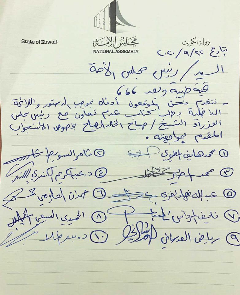 استجوابا الكندري والسبيعي للخالد ينتهيان بـ «عدم تعاون»
