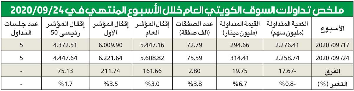 سجلت مؤشرات بورصة الكويت الرئيسية قفزة كبيرة واستثنائية ومعاكسة لمعظم مؤشرات الأسواق المالية العالمية والخليجية خلال الأسبوع الماضي، ولم تلتفت لأي أخبار سلبية كانت بداية الأسبوع خاصة بتسريبات من شركة فنسن بشأن عمليات غسل أموال ضربت البورصات العالمية لجلستين تقريبا، غير أن مؤشرات بورصة الكويت حققت نموا كبيرا بنهاية المطاف، وأقفل اسبوعها على نمو كبير في مؤشر السوق العام بنسبة 3 في المئة تساوي 161.66 نقطة، ليقفل على مستوى 5608.82 نقاط، وهي أعلى مستوياتها خلال 6 أشهر، وكذلك حال مؤشر السوق الأول الذي سجل نموا أكبر وبدعم من أداء الأسهم القيادية الخمس الكبرى (الوطني وبيتك وزين وأهلي متحد بحريني وأجيليتي)، وحقق نسبة 3.5 في المئة تساوي 211.74 نقطة، ليقفل على مستوى 6221.64 نقطة، وكانت مكاسب مؤشر السوق رئيسي 50 أقل وبنسبة 1.7 في المئة هي 75.13 نقطة، ليقفل على مستوى 4447.64 نقطة.واستقر النشاط على تغيّر أحمر محدود دون نصف نقطة مئوية، مقارنة مع أداء الأسبوع السابق، في وقت ارتفعت السيولة، بعد أن استقرت جميع جلسات الأسبوع فوق مستوى 60 مليون دينار، وحقق مؤشرها نموا بنسبة 6.7 في المئة، في حين ارتفع عدد الصفقات بنسبة 3.8 في المئة، وكانت القفزة الأكبر بأسعار الأسهم القيادية مثل الوطني وبيتك وأجيليتي وأهلي متحد، كما ارتفعت أسعار الأسهم الوسط بقطاع المصارف بنسب واضحة كذلك، في وقت استقر أداء الأسهم الصغيرة والمضاربية وتراجع نشاطها، لينتهي الأسبوع على أفضل حال، وبانتظار تقديرات أرباح الربع الثالث الذي سينتهى خلال هذا الأسبوع.واستفاد مؤشر سوق البحرين من النمو القوي لسهم أهلي متحد في بورصة الكويت، مما قاد مؤشر السوق الى نمو بنسبة كبيرة بلغت 1.1 في المئة، تساوي 15.14 نقطة، ليقفل على مستوى 1450.39 نقطة، وتقلصت خسائر السوقين الكويتي والبحريني الى 10 في المئة لهذا العام.