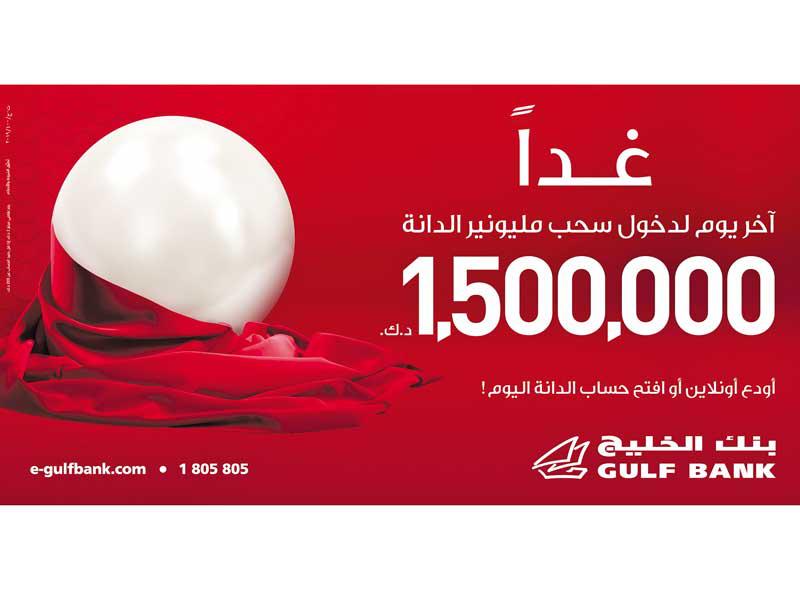 بنك الخليج: غداً آخر فرصة للمشاركة في سحب «الدانة» السنوي الكبير