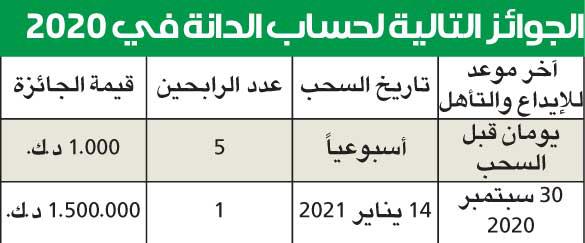 من المميزات العديدة التي يتمتع بها عملاء حساب الدانة أنه الحساب الوحيد في الكويت الذي يحوِّل فرصك بالفوز من السنة الماضية إلى التالية ضمن برنامج مكافأة العملاء على وفائهم وولائهم لبنك الخليج.كذلك، تمت إضافة كل فرص الربح لعملاء الدانة الحاليين من عام 2019 (من 1 يناير إلى 31 ديسمبر 2019) إلى سحوبات عام 2020، شرط أن يتأهلوا للسحب وألا تنخفض أرصدتهم في أي وقت من سنة 2020 إلى ما دون 200 دينار.وللإشارة فإن جميع السحوبات تتم بحضور ممثل من وزارة التجارة والصناعة، وتجري مراجعة وتدقيق السحوبات ربع السنوية والسحب السنوي من شركة إرنست أند يونغ Ernst & Young.ويمكن للعملاء الحصول على فرص للدخول والفوز بجوائز الدانة النقدية على مدار السنة في السحوبات المدرجة.ولزيادة فرص الربح، يجب على العملاء أن يحافظوا على المبلغ المودع في الحساب وألا يقل عن 200 دينار، أو أن يزيدوه للحصول على فرص ربح أكثر باستمرار، ويمكن للعملاء الحصول على فرصة لدخول السحب الأسبوعي وربع السنوي والسنوي.فتح حساب الدانة