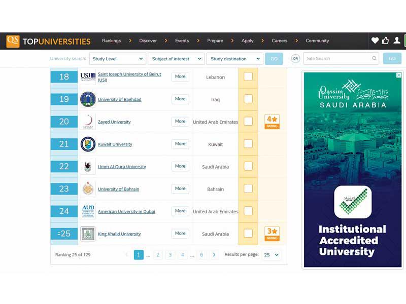 تصنيف «QS» وضع الجامعة في المرتبة 801 على مستوى العالم من بين 1000 جامعة