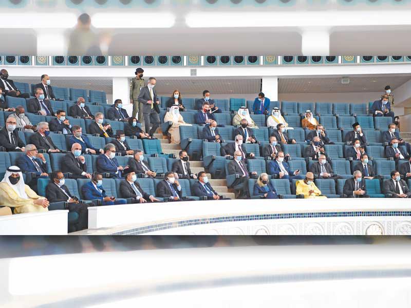 سمو الأمير محيياً الحضور وإلى جانبه الغانم