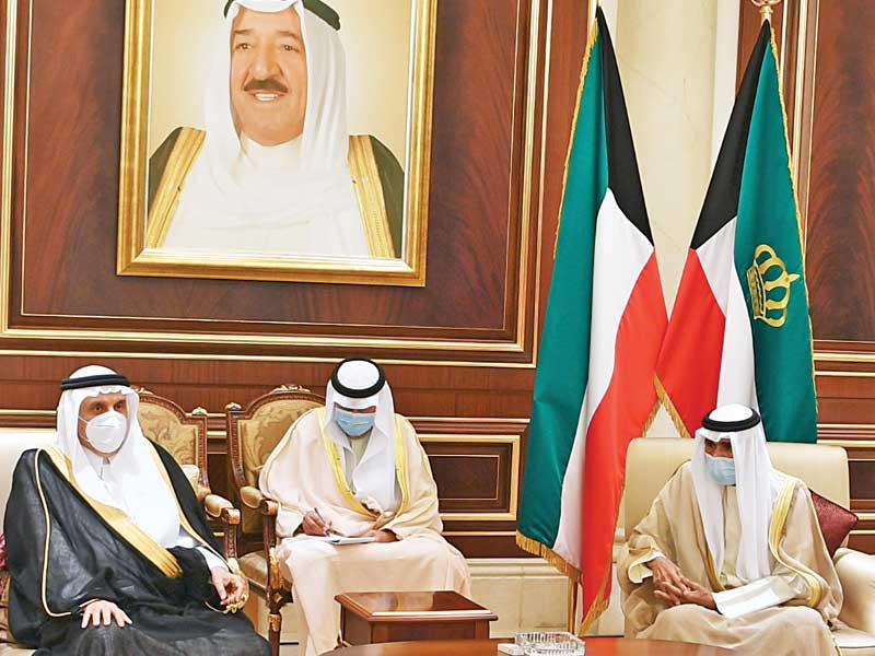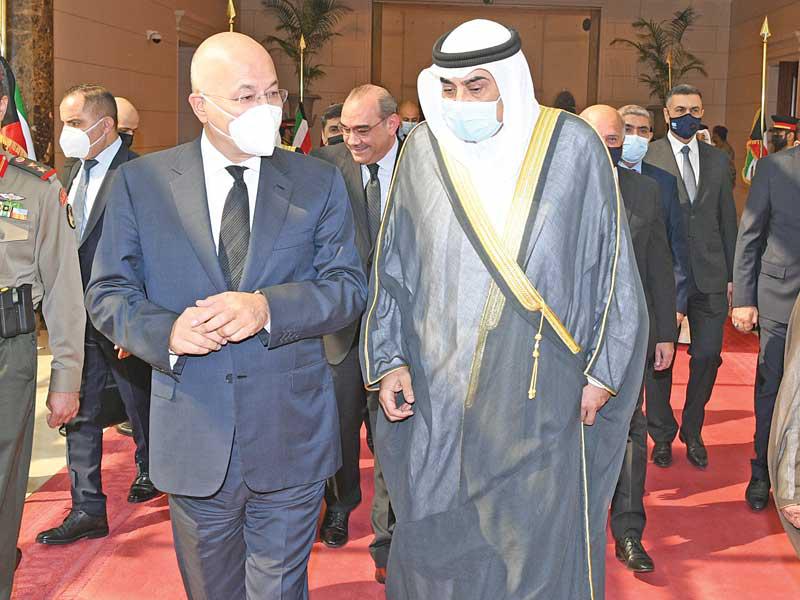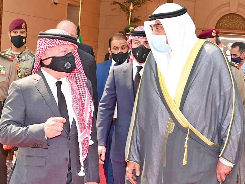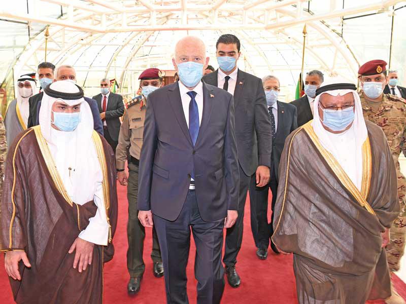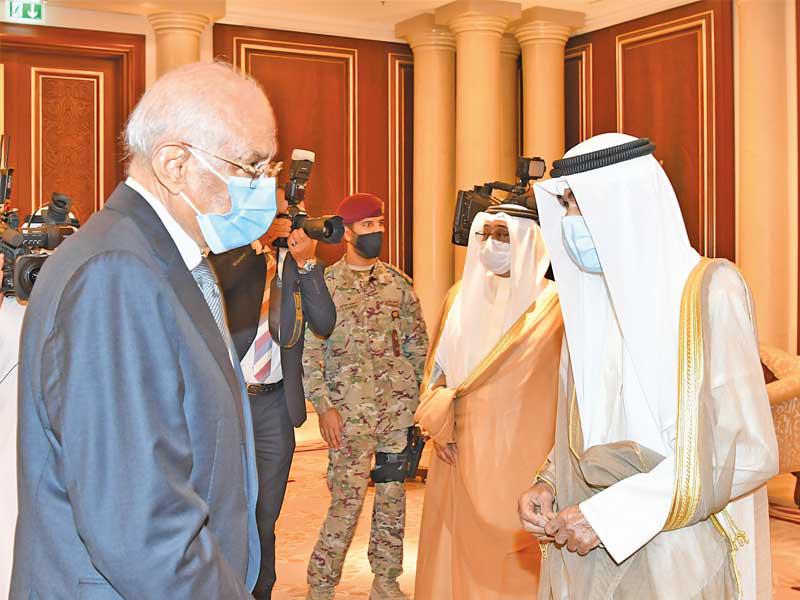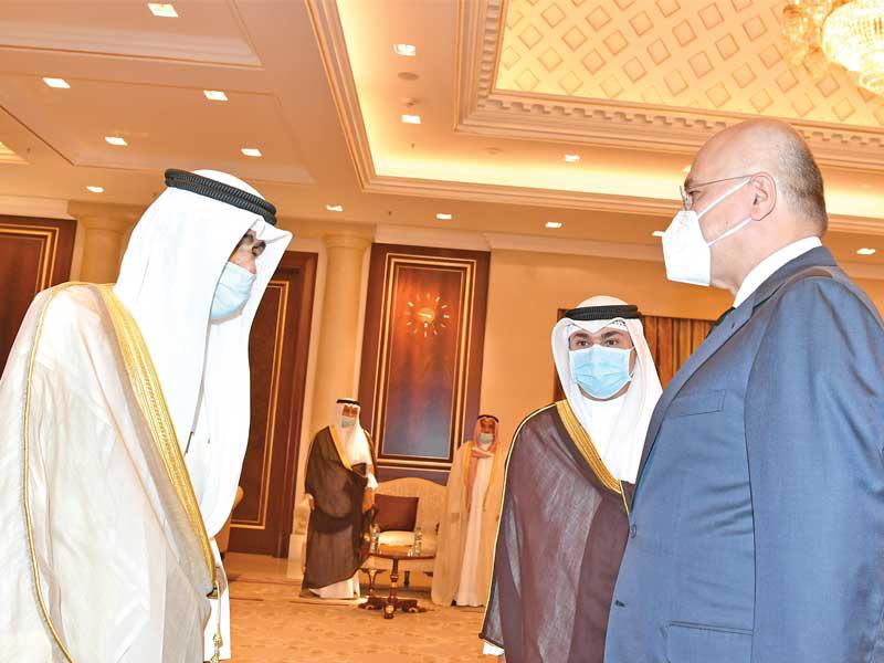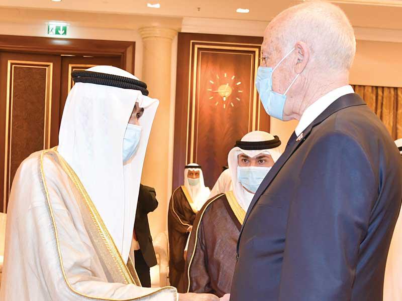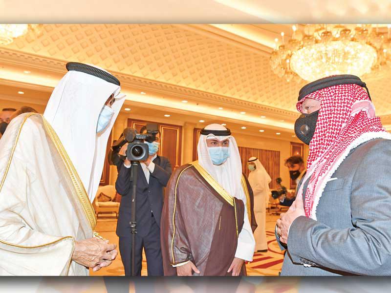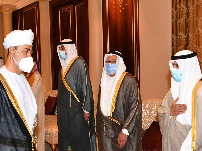 سلطان عمانفي هذا السياق، استقبل صاحب السمو، أمس، في المطار الأميري سلطان عمان هيثم بن طارق، والوفد المرافق له، حيث قدم واجب العزاء بوفاة فقيد الوطن الأمير الراحل.ورافق سلطان عمان وفد ضم فهد بن محمود آل سعيد نائب رئيس الوزراء لشؤون مجلس الوزراء، وفاتك بن فهر آل سعيد المبعوث الخاص للسلطان، وتيمور بن أسعد آل سعيد رئيس مجلس محافظي البنك المركزي العماني، وخالد بن هلال البوسعيدي وزير ديوان البلاط السلطاني، والفريق أول سلطان بن محمد النعماني وزير المكتب السلطاني، وحمود بن فيصل البوسعيدي وزير الداخلية، وبدر بن حمد البوسعيدي وزير الخارجية، ود. حمد بن سعيد العوفي رئيس المكتب الخاص، وسعود بن هلال البوسعيدي وزير الدولة ومحافظ مسقط، ود. عبدالله بن ناصر الحراصي وزير الإعلام، وقيس بن محمد اليوسف وزير التجارة والصناعة وترويج الاستثمار، وعدد من المسؤولين. مصر والعراق والأردنواستقبل صاحب السمو في المطار الأميري الرئيس المصري عبدالفتاح السيسي، والوفد المرافق له، حيث قدم واجب العزاء في وفاة فقيد الوطن طيب الله ثراه وجعل الجنة مثواه.ورافق السيسي وفد ضم رئيس مجلس النواب د. علي عبدالعال، ووزير الخارجية سامح شكري، وعدداً من المسؤولين. كما استقبل سمو أمير البلاد الشيخ نواف الأحمد الرئيس العراقي د. برهم صالح والوفد المرافق له، حيث قدم واجب العزاء بالأمير الراحل، ورافقه وفد ضم وزير الخارجية د. فؤاد حسين، ووزير المالية د. علي عبدالأمير علاوي، ووزير التخطيط د. خالد بتال نجم، ورئيس هيئة المستشارين د. علي الشكري، ورئيس ديوان رئاسة الجمهورية د. مهند البياتي وعددا من المسؤولين. واستقبل سمو أمير البلاد العاهل الأردني الملك عبدالله الثاني بن الحسين، والأمير الحسين بن عبدالله الثاني ولي العهد، والوفد المرافق له، حيث قدم واجب العزاء في وفاة فقيد الوطن، ورافقه وفد ضم د. عمر الرزاز رئيس الوزراء وزير الدفاع، وفيصل الفايز رئيس مجلس الأعيان، ويوسف العيسوي رئيس الديوان الملكي، وأيمن الصفدي وزير الخارجية وشؤون المغتربين، ود. بشر الخصاونة مستشار الملك وعدد من المسؤولين.واستقبل سمو أمير البلاد الشيخ نواف الأحمد ممثل ملك البحرين حمد بن عيسى آل خليفة، ولي العهد نائب القائد الأعلى النائب الأول لرئيس مجلس الوزراء الأمير سلمان بن حمد آل خليفة، والوفد المرافق له، حيث قدم سموه واجب العزاء في وفاة الأمير الراحل.ورافقه وفد يضم الشيخ محمد بن مبارك آل خليفة نائب رئيس مجلس الوزراء، والشيخ خالد بن أحمد آل خليفة وزير الديوان الملكي، والشيخ خالد بن عبدالله آل خليفة نائب رئيس الوزراء، والفريق أول الشيخ راشد بن عبدالله آل خليفة وزير الداخلية، والشيخ سلمان بن خالد آل خليفة المدير العام لمجلس العائلة المالكة.واستقبل صاحب السمو نائب أمير قطر الشيخ عبدالله بن حمد آل ثاني والوفد المرافق له، حيث قدم واجب العزاء، ورافقه وفد ضم الشيخ القعقاع بن حمد آل ثاني، والشيخ عبدالله بن ناصر آل ثاني، والشيخ حسن بن خالد آل ثاني، والشيخ خليفة بن جاسم بن محمد آل ثاني، والشيخ جاسم بن حمد بن جاسم بن جبر آل ثاني.كما استقبل صاحب السمو، في المطار الأميري، ظهر أمس، رئيس الجمهورية التونسية قيس سعيد والوفد المرافق له، إذ قدموا واجب العزاء في وفاة فقيد الوطن المغفور له، بإذن الله تعالى، سمو أمير البلاد الراحل الشيخ صباح الأحمد، طيب الله ثراه، وجعل الجنة مثواه.واستقبل سموه، في المطار الأميري، ممثلي خادم الحرمين الشريفين الملك سلمان بن عبدالعزيز آل سعود ملك المملكة العربية السعودية، وممثلي ولي العهد نائب رئيس مجلس الوزراء وزير الدفاع الأمير محمد بن سلمان، وزير الدولة عضو مجلس الوزراء مستشار خادم الحرمين الشريفين الأمير الدكتور منصور بن متعب، ووزير الطاقة الأمير عبدالعزيز بن سلمان، وسفير خادم الحرمين الشريفين لدى الكويت الأمير سلطان بن سعد، ووزير الدولة عضو مجلس الوزراء الأمير تركي بن محمد، ونائب أمير المنطقة الشرقية الأمير أح