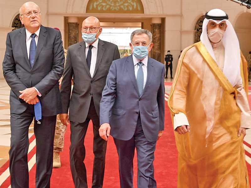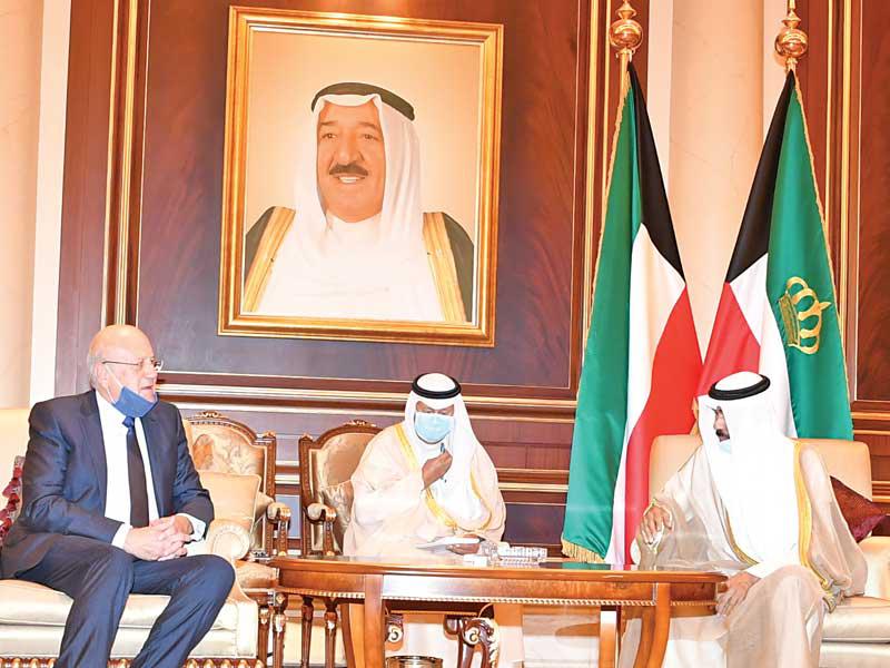 الأمير مستقبلاً رئيسي الحكومة اللبنانية السابقين فؤاد السنيورة ونجيب ميقاتي