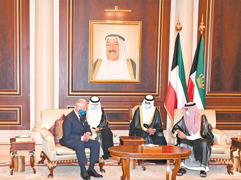 سمو أمير البلاد الشيخ نواف الأحمد تلقى تعازي حمد بن خليفة ومحمد بن راشد وتشارلز والبرهان وماكرون وهادي