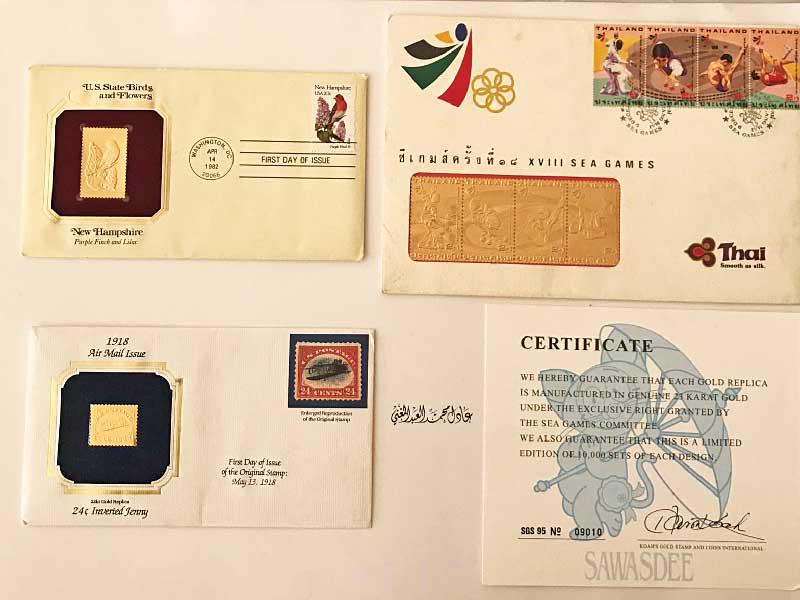 عند تناول الإفطار كل صباح على طريقة "الترويقة اللبنانية"، أستمع إلى ألحان وأغاني فيروز الجميلة، فتكتمل لدي الأجواء اللبنانية الشاعرية.لفت انتباهي أثناء الاستماع إلى أغنية فيروز الشهيرة، التي مطلعها "غالي الذهب غالي... وضِحْكت عناقيدو"، أن لدي طوابع بريدية مصنوعة من الذهب الحقيقي... ولِمَ لا يكون ذلك؟ وما يمنع أن تُصْدِر إدارات البريد في العالم مثل هذه المقتنيات النادرة إذا شعرت بأنه سيكون لها سوق رائج لدى الهواة ومعارض ومنتديات عالمية تجرى من خلالها المسابقات والمزادات، ثم تُباع هذه النوادر بأثمان خيالية ويربح حينئذ الهواة.قبل الحديث عن طوابع الذهب التي أمامكم، سأروي لكم هذه القصة، التي بدأت معي في 29/7/1990، عندما أصدرت إدارة البريد بالكويت 3 طوابع بريدية اعتيادية عليها رسم رأس الصقر، الأول فئة 50 فلساً، والثاني فئة 100 فلس، والثالث فئة 150 فلساً، وإجمالي ثمن هذه المجموعة 300 فلس، وحصل الاحتلال العراقي للكويت ولم تُستخدم هذه الطوابع في الكويت إلا على نطاق محدود لفترة قصيرة سبقت الاحتلال، وأصبحت نادرة، والكل يتحدث عنها ويود الحصول عليها، ومن محاسن الصدف عند صدور أي طوابع بريد كويتية جديدة لا أشتري طابعاً واحداً من كل فئة، وإنما صفحة كاملة (sheet)، تحتوي على 50 طابعاً، وتكوّن لدي ثلاث مجموعات لرأس الصقر، ولم يُكلف ثمنها جميعاً إلا 15 ديناراً فقط.