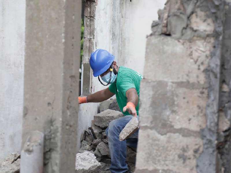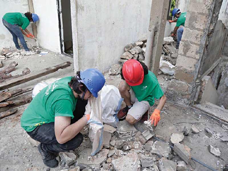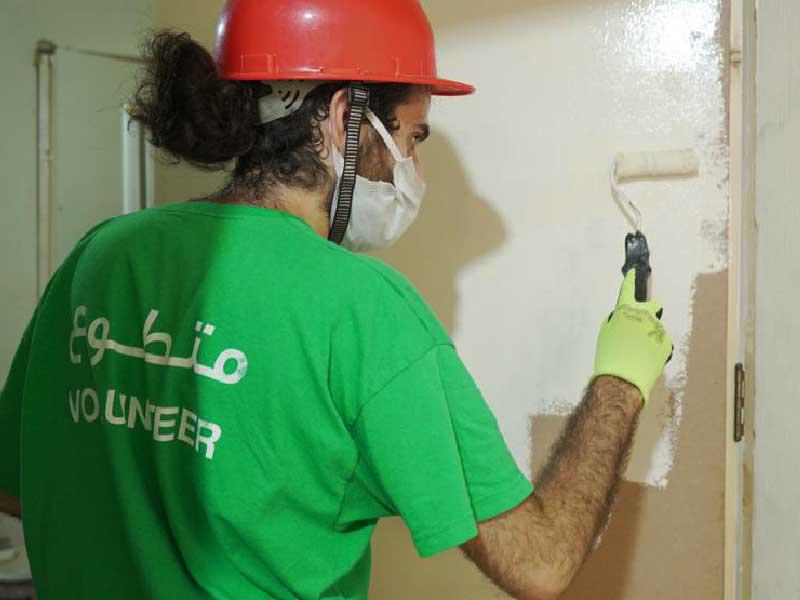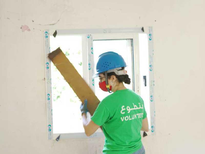 بعض المتطوعين خلال تأهيل المنازل المتضررة من الانفجار