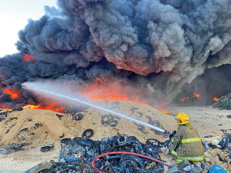 وأضاف ان «حريق الاطارات ليس بالسهل، وتلوثها عال جداً، وهو الامر الذي تسبب في مد فترة اخماد قوة الاطفاء للحريق الى نحو يومين»، مشيراً الى ان الهواء في يوم الحريق ازاح الدخان بفضل العناية الإلهية خارج البلاد.وعبر الابراهيم عن أسفه لوقوع مثل هذا الحريق، موضحاً ان هذه الاطارات يفترض خلال عملية تخزينها الا توضع في مواقعها المخصصة الا عبر اشتراطات خاصة منها ان توضع في احواض رملية وبكميات محددة، بالاضافة الى ترك مسافات بين كل من تلك الكميات لتجنب وقوع مثل تلك الحرائق بأحجام كبيرة.يذكر أن حريق طريق السالمي، وتحديدا عند الكيلو 67 اندلع عصر الخميس الماضي، وتم تحريك 4 مراكز تابعة للإطفاء من مواقع الشقايا والجهراء الحرفي وكاظمة والإسناد، بالإضافة إلى آليات بلدية الكويت، حيث عملت الفرق على عزل كميات الإطارات عن بعضها البعض لمنع تمدد النيران إليها، بالإضافة الى استخدام الجرافات لدفن الاطارات المشتعلة.