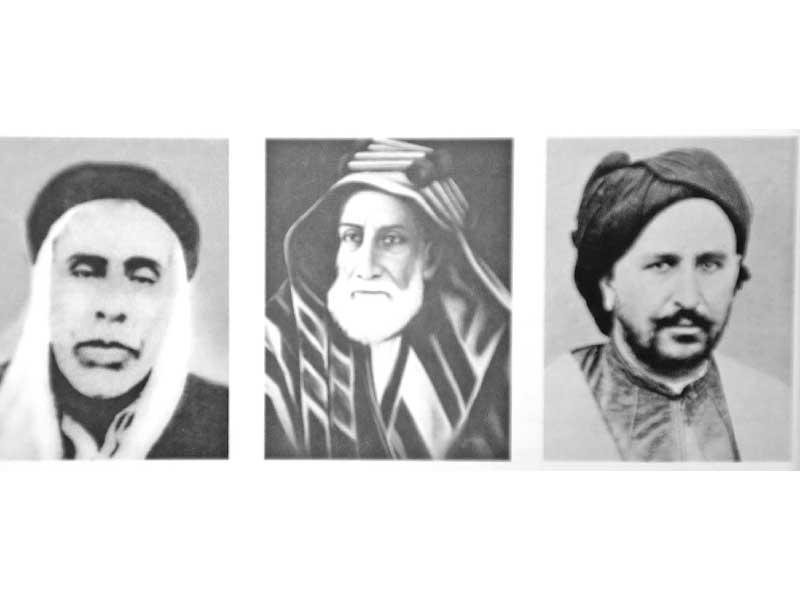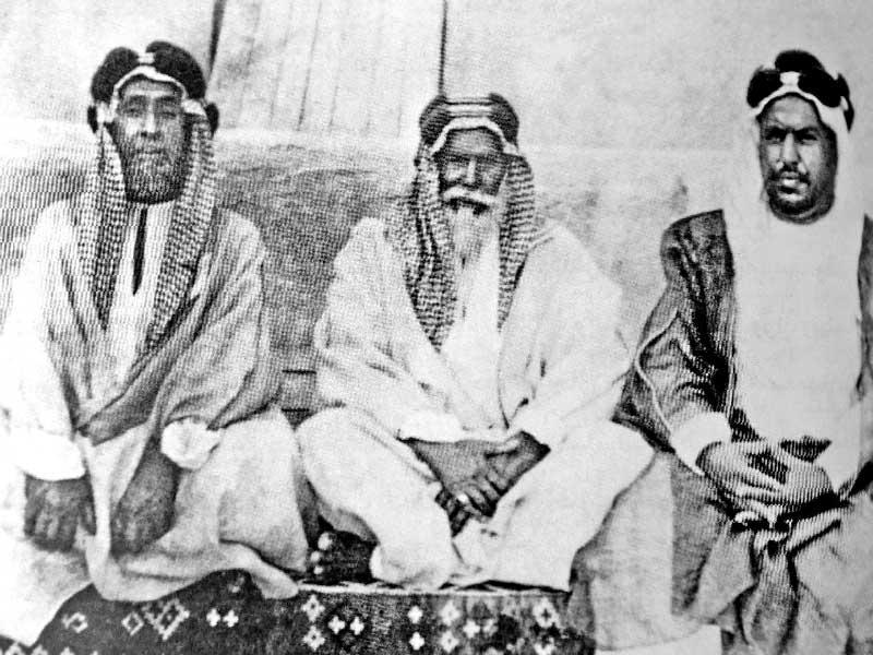 من اليمين: الشيخ عبدالله السالم الصباح وهلال المطيري والطواش شملان بن علي بن سيف