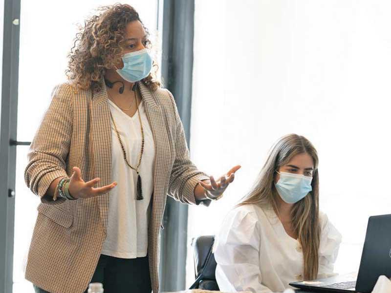 نينار القامس ومنى زعيتر عضوتا مجلس شباب لوياك خلال الاجتماع الأول لمجلس الأمناء بعد جائحة كورونا