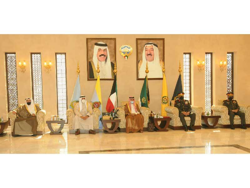 وأضاف سموه: "لا يفوتني في هذا اللقاء أن أشيد وأسجل الثناء على ما قام به حماة الوطن في الآونة الأخيرة من إسهام فعال في تطبيق الإجراءات الاحترازية وضمان انتظام ونجاح جهود مكافحة انتشار وباء كورونا، فكانوا دائما خير عون وسند، رغم ما تعرضوا له من مخاطر العدوى والإصابة".وتابع سموه: "لم يتأخر جيشنا الكويتي أو يتوان عن القيام بواجبه القومي، فشارك مشاركة فعالة بالرجال والمعدات، وقدّم الشهداء في معارك الدفاع العربية على أرض سيناء والجولان، حيث اختلطت دماؤهم مع دماء أشقائهم في مصر وسورية الشقيقتين".فخر واعتزاز