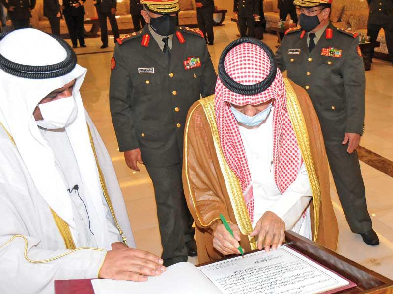 تفضل صاحب السمو أمير البلاد بالتوقيع على سجل الشرف، وتم التقاط صور تذكارية مع سموه بمناسبة زيارته لوزارة الدفاع.ورافق سموه خلال الزيارة رئيس الديوان الأميري الشيخ مبارك الفيصل، بعدها غادر سموه وزارة الدفاع بمثل ما استُقبل به من حفاوة وتقدير. من جانبه، قدّم معاون رئيس الأركان العامة لهيئة العمليات والخطط، اللواء الركن محمد الكندري، شرحا للمنظومة العسكرية والموقف العام للجيش الكويتي والكفاءة القتالية العالية لتعزيز مهام رجال القوات المسلحة لحماية الوطن واستعدادهم الدائم للتضحية بأرواحهم فداء للكويت.