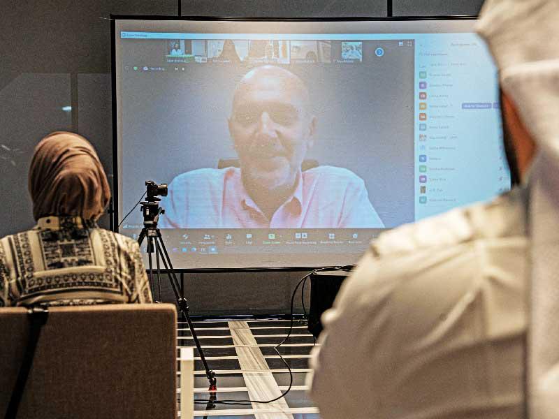 خلال لقاء مع متدربي برنامج «الجوهر» أداره الإعلامي اللبناني ريكاردو كرم