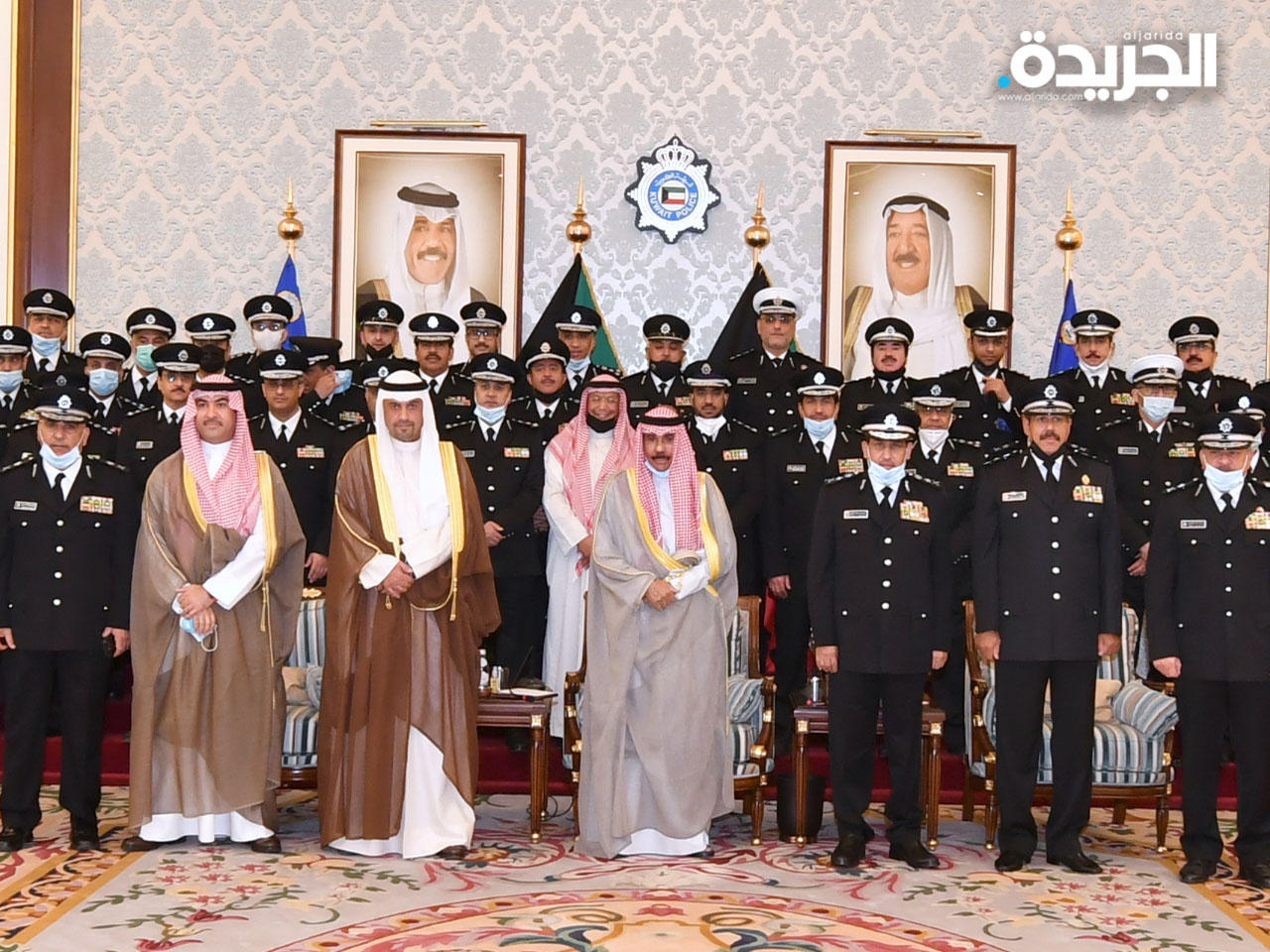 ومن جانبنا فإننا لن نألو جهداً، ولن ندّخر وسعاً في سبيل تعزيز وتطوير كفاءة وقدرات وإمكانات كافة قطاعات الوزارة، لتمكينها من أداء واجبها على أكمل وجه.وإذ يسعدني ما شهدته الوزارة من تطوير وإنجاز خلال الفترة الماضية، وما لمسنا صداه ونتائجه في الواقع التطبيقي، فإنه لا يفوتني في هذا اللقاء أن أشيد وأسجل الثناء والتقدير لما قام به أبناء مؤسستنا الأمنية من دور فعّال وإسهام مشهود في تطبيق الإجراءات الاحترازية، وضمان نجاح جهود مكافحة انتشار وباء "كورونا"، وعلى الرغم من تعرضهم لمخاطر العدوى والإصابة وعوامل الطقس القاسية كانوا دائماً في الصفوف الأولى، فاستحقوا بذلك محبة المواطنين وثقتهم وتقديرهم.وختاماً أكرر الشكر لقوات الشرطة والأمن، مؤكداً ثقتي فيهم ودعمي لهم، للقيام بواجبهم في الحفاظ على الأمن، سائلا الله سبحانه وتعالى أن يوفقنا جميعاً لما فيه الخير لخدمة وطننا الغالي الكويت، ليظل واحة للأمن والاستقرار.ثم ألقى نائب رئيس مجلس الوزراء وزير الداخلية وزير الدولة لشؤون مجلس الوزراء كلمة قال فيها "إنه لشرف عظيم أن يحظى أبناؤكم وبناتكم بهذه الزيارة الكريمة، وهي لفتة مقدرة من والد عزيز تعكس مدى تقدير سموكم لهذه المؤسسة الحيوية التي تشرفت بقيادتكم الحكيمة، ونال مبناها شرف حمل اسمكم الكريم، تقديرا لدوركم واعتزازا بما قدمتموه طوال مسيرتكم الحافلة".وأضاف "نحمد الله ونشكره على نعمة الأمن التي ينعم بها الجميع في الكويت، كما نشكره تعالى على أجواء الحرية التي يتمتع بها كل من يعيش على أرضها الكريمة، وهو ما يترجم سيادة القانون والعدالة التي ترسخت دعائمها عبر النهج الديمقراطي الذي التزمت به الكويت منذ نشأتها".وخاطب الصالح صاحب السمو بقوله "إن ما قام به أبناؤكم وبناتكم العاملون في وزارة الداخلية لهو جزء من مسؤولياتهم وواجباتهم تجاه وطنهم، وقد جاءت هذه الجائحة الخطيرة لتشكل تهديدا يقوض كل أوجه الحياة في كافة مناحيها، الأمر الذي استوجب استنفارا لجميع الجهود والإمكانات وتوحيد الطاقات لمواجهة هذا العدو الشرس، ومنع انتشاره، وتجنب مخاطره وآثاره، ونسأله جلت قدرته أن يرفع عنا هذا البلاء، ويحفظ بلدنا والبشرية جمعاء". وذكر "أمامنا يا صاحب السمو تحديات كبيرة تستوجب منا مضاعفة الجهود، والمزيد من اليقظة والحذر، والالترام الجاد بتطبيق القانون على الجميع بلا تهاون، كما تقتضي تجسيد التعاون الإيجابي بين المواطنين ورجال الأمن، لتحقيق الأمن والاستقرار في البلاد".الأمير: سعدنا بإنجازات «الداخلية» وتطورها خلال الفترة الماضية