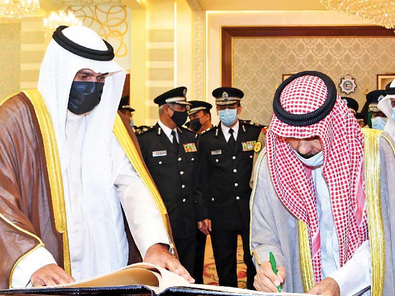 وأضاف وزير الداخلية "نظرا لارتباط الأمن بالقانون، فإن العمل يجري حاليا على إعادة النظر في العديد من القوانين وتطويرها، بما يتوافق مع أهدافها وغاياتها بعد انقضاء زمن طويل على إصدارها، وظهور بعض السلبيات التي أبرزها الواقع التطبيقي، وقد انتهت الوزارة من إعداد حزمة مشاريع لقوانين أقرها مجلس الوزراء، تتمثل في مشروع قانون تجنيس زوجة الكويتي، لتنظيم عملية التجنيس، بما يراعي الجانب الإنساني، ويحافظ على الهوية الوطنية، ومشروع قانون المرور ليتوافق مع القوانين المرورية العالمية، والحفاظ على الأرواح، ومشروع قانون إقامات الأجانب لتجريم ومكافحة تجارة الإقامات، التي أضرت بشكل مباشر التركيبة السكانية، وأخيرا وليس آخر مشروع قانون اللجنة الوطنية للانتخابات، الذي أقره المجلس هذا الأسبوع في مداولته الأولى ليكون تحت نظر مجلس الأمة القادم". وتابع "كما تقوم الوزارة بالتوسع في استخدام التقنيات الحديثة في مجمل خدماتها وإجراءاتها، والذي من شأنه إضفاء المزيد من الدقة والسرعة في هذه الخدمات، إلى جانب الحد من مظاهر التزوير والتحايل المحتملة".وختم بقوله "باسمي وباسم أبنائكم وبناتكم منتسبي وزارة الداخلية أكرر شكري العميق وعظيم الاعتراز لزيارة سموكم الكريمة، وتوجيهاتكم السديدة، التي ستكون لنا نبراسا هاديا في جميع أعمالنا، ونعاهدكم على بذل قصارى الجهود في أداء واجباتنا ومسؤولياتنا، من أجل تأمين مقومات أمن البلاد واستقرارها، سائلين المولى القدير أن يحفظكم، ويديم عليكم موفور الصحة والعافية، وأن يحفظ كويتنا الغالية من كل سوء بقيادة سموكم وسمو ولي عهدكم الأمين".توقيع وصور تذكارية