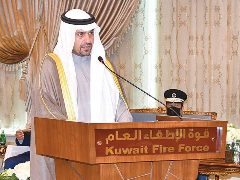 من جهته، ألقى الوزير الصالح كلمة جاء في نصها: يطيب لي باسمي ونيابة عن جميع منتسبي قوة الإطفاء العام أن أرحب بسموكم، معربا عن أسمى آيات الشكر والاعتزاز بهذه الزيارة الكريمة، فهي شرف عظيم لنا جميعا نعتز به ونفخر بما تمثله من اهتمام وتقدير سموكم بالدور المهم الذي تتولاه قوة الإطفاء العام، مشيرا إلى أنها تتولى مسؤولية الحفاظ على سلامة المواطنين وحماية الأرواح والممتلكات من أخطار الحرائق وحوادثها كافة، كما تتولى وضع شروط وقواعد السلامة في المباني والمنشآت على اختلاف أغراضها التجارية والصناعية والمهنية.وأشار إلى اعتماد قانون قوة الإطفاء الجديد الذي سيهدف إلى معالجة العديد من الثغرات والسلبيات التي كانت تشوب القانون السابق، كما أنه أضفى العديد من الامتيازات والحوافز المستحقة لأبنائكم العاملين في الإطفاء لما تحمله طبيعة عملهم من التضحيات والمخاطر، معتبرا أن القانون يعد إنجازا إيجابيا متميزا من شأنه أن يشجع رجال قوة الإطفاء على بذل المزيد من الجهد والارتقاء بأداء مسؤولياتهم وواجباتهم الإنسانية، ولاسيما ما أتاحه هذا القانون الجديد من منح العاملين في قوة الإطفاء الضبطية القضائية وتشديد العقوبات على المخالفين لشروط السلامة والوقاية من الحريق في المباني والمنشآت المختلفة لرفع مستوى الأمن والأمان في المجتمع وحماية الأرواح والممتلكات.القانون الجديد