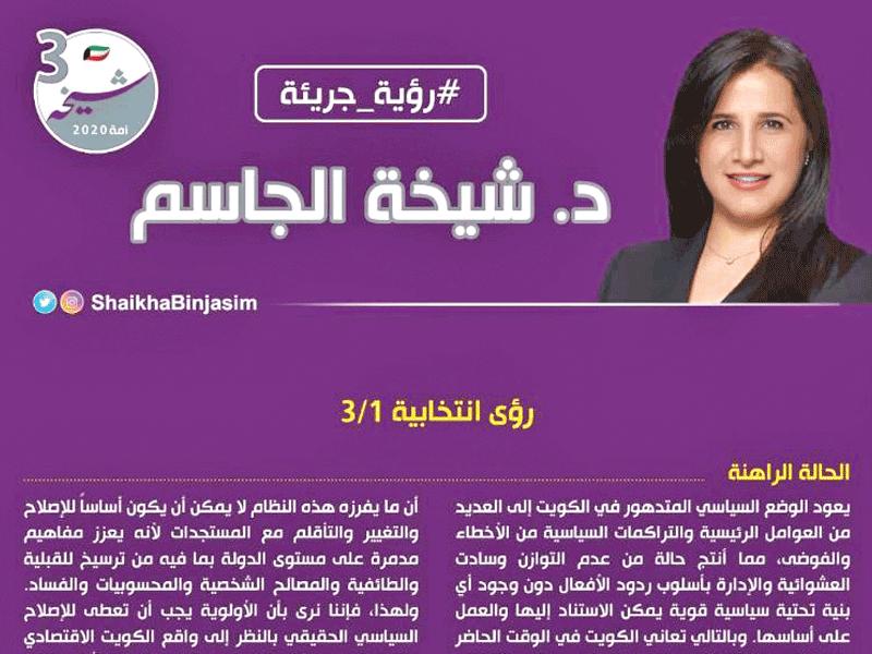 33 مرشحة يخضن انتخابات مجلس الأمة 2020، وكلهن أمل أن يتحقق الحلم بوصولهن إلى قبة البرلمان، الذي مثلت فيه المرأة الكويتية 6 نساء منذ نيل المرأة حقوقها السياسية في عام 2006، إذ وصل عدد منهن مثل د. معصومة المبارك، ود. أسيل العوضي، وذكرى الرشيدي، وسلوى الجسار، ود. رولا دشتي، وصفاء الهاشم.وتعتبر الهاشم المرأة الوحيدة التي استطاعت الوصول إلى البرلمان مرتين في مجلسي 2013 و2016، أما البقية فمنهن من نجحت مرة واحدة، أو مرتين خلال فترة المجلسين المبطلين، وهي د. معصومة المبارك التي مثلت المرأة وزيرة ونائبة، إضافة إلى رولا دشتي، وذكرى الرشيدي.