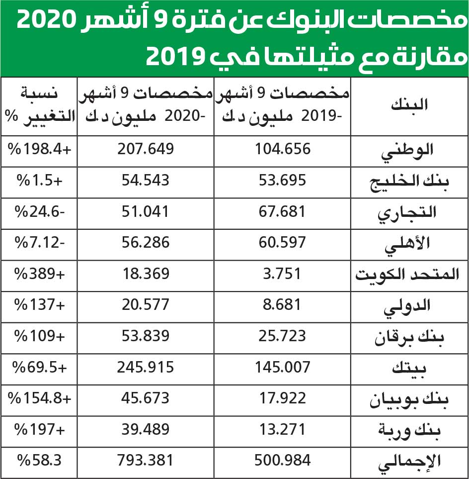 المخصصات تبلغ 793.3 مليون دينار بنمو 58.3%