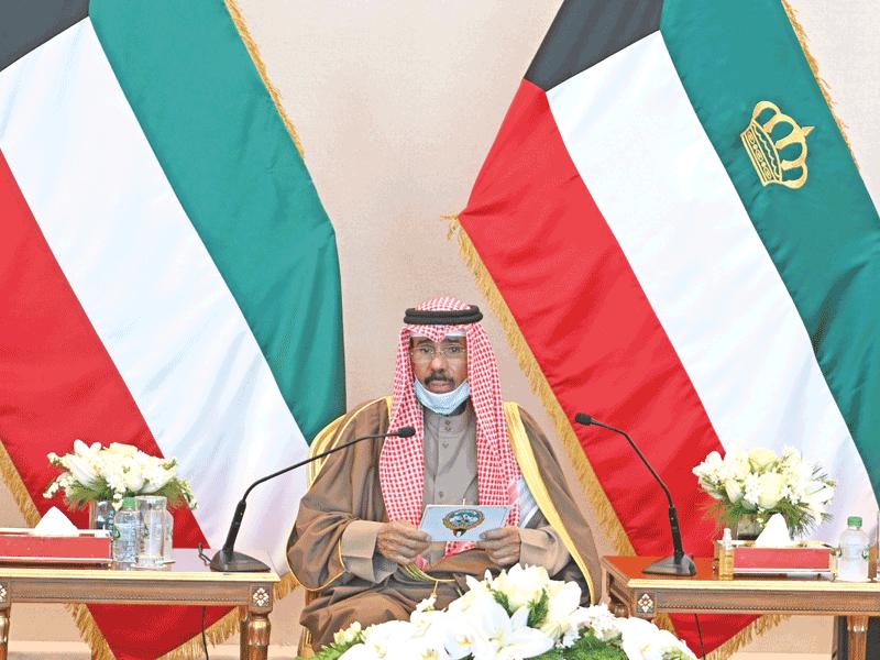 أكد صاحب السمو أمير البلاد الشيخ نواف الأحمد، أن ما شهدناه من تكاتف وتعاضد في وطننا لأجل التصدي لجائحة "كوفيد 19" يبرهن على متانة وحدة الصف الكويتي وقت الشدائد، ومدى صلابة أبناء هذا الوطن في مواجهة أي تحديات بكل عزيمة وصبر وثبات.وأشاد صاحب السمو في كلمة له خلال زيارته أمس لوزارة الصحة, بالكوادر والطواقم الطبية، الذين يحملون على كاهلهم أمانة الحفاظ على صحة وسلامة الجميع, حيث أثبتوا أنهم خط الدفاع الأول عن الوطن بالوقوف في الصفوف الأمامية للتصدي للوباء والحد من انتشاره، رغم ما يتعرضون له من خطر العدوى.واستذكر سموه ببالغ الفخر مسيرة سمو الأمير الراحل الشيخ صباح الأحمد، طيب الله ثراه، ودوره المشهود لأجل الارتقاء بالمنظومة الصحية، مؤكدا السير على نهجه الرشيد.