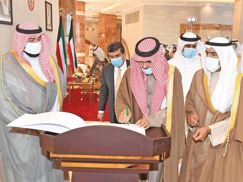 وختم وزير الصحة بقوله: إن ما تتناقله الأوساط العلمية والإعلامية من النتائج المبشرة حول تطوير وانتاج اللقاحات الفعالة والآمنة للوقاية من كورونا المستجد، والحد من تداعياته، وحماية الفئات الأكثر تعرضاً من الإصابة به يحظى بالمتابعة المستمرة والدقيقة من جانب القيادات والمتخصصين بوزارة الصحة، لتكون الكويت بعون الله تعالى وتوفيقه من أوائل الدول التي تتيح الفرصة لمواطنيها للحصول على اللقاح الآمن والفعال. نؤكد لكم بقاءنا على العهد ولاء ووفاء لكم، حفظكم الله ورعاكم، ولكويتنا الغالية أدامها الله عزيزة شامخة وواحة أمن وأمان في ظل قيادتكم الحكيمة وآرائكم الرشيدة ونصائحكم وتوجيهاتكم السديدة".بعدها تفضل صاحب السمو بالتوقيع على سجل الشرف، كما تم التقاط صورة تذكارية مع سموه بهذه المناسبة. أبناء الكويت وقت الفزعة... شخص واحد