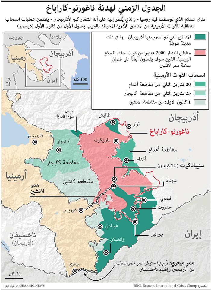 تلك الحالة تعكس العلاقة المريرة والمتوجسة بين الطرفين، والتي تذكرنا بحالة العرب مع إسرائيل، فعدد كبير من الدول العربية عندما تمنح جوازات السفر لمواطنيها تمهرها بعبارة "كل الدول ما عدا إسرائيل".الآن، وبعد حرب الـ44 يوماً بين أرمينيا وأذربيجان يتعرّض الزائر للعاصمة الأرمينية يريفان، لسؤال آخر: هل سبق أن زرت تركيا؟.. لتضاف إلى الدول غير المرغوب فيها، كما حصل مع الزميل الصحافي محمد البقالي، أثناء اندلاع المواجهات العسكرية، فقد زادت حدة الخصومات قائمة الدول التي تحاصر أرمينيا. إقليم ناغورني كاراباخ، أي جبال الحديقة السوداء بالأذرية، أو كما يسميه الأرمن "آرتساخ"، يبقى حديث الساعة، نظرا لما يمثّله من موقع استراتيجي يرتبط بثلاث قوى محيطة به، هي روسيا وتركيا وإيران".تبعية الإقليم تحدد موازين القوى في جنوب القوقاز، فالجغرافيا السياسية هنا تلعب دورا مؤثرا وترسم حدود التنافس، لاسيما ما له علاقة بخطوط نقل الغاز والنفط (خط تانام) من أذربيجان باتجاه أوروبا، إضافة الى القواعد العسكرية المنتشرة في الدولتين المتقاتلتين.ثلاثون عاماً مضت على بدء النزاع، ولا يزال الحل "مجمدا"، فقد تكون حالة دولية خاصة تنتظر لحظة الحسم عندما تتهيأ لها الظروف، أو تجد القوى العظمى والمتصارعة أن الوقت قد حان لحلها.