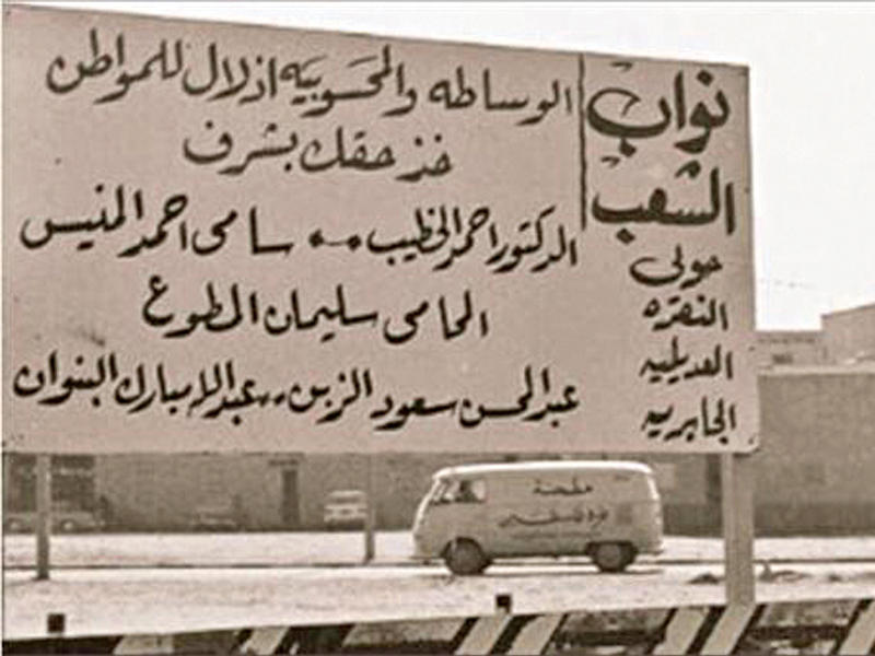 والإجابة عن هذه التساؤلات، تحتاج إلى وقت طويل وشرح مستفيض، وسأتجاوز ذلك الآن، وإنما أستطيع القول إن الواسطة والمحسوبية أصبحت ظاهرة للأسف الشديد، ومثل الوباء، ووجودها في المجتمع يقتل الطموح والفرص، وتجاوز على حقوق المستحقين لغير المستحقين، وعلينا جميعاً محاربتها بقوة، فهي لها صور وأشكال وطرق ومداخيل متعددة، وعلى سبيل المثال من هذه النماذج أن يأتي إنسان إلى مكان عمل لا يستحقه، والمفروض أن يكون هذا المكان لأحد غيره من ذوي الخبرة والكفاءة والمشهود له بالأمانة، وبعد فترة تظهر عيوب هذا الذي هبط "بالبراشوت" في الوظيفة الجديدة، وتتضح قلة خبرته وتطفح تجاوزاته وتكثر مخالفاته والتستر والإصلاح والترميم يكون حينئذ صعباً.والسبب الأساسي في المشكلة في بدايتها يكون لإرضاء فئة أو عائلة أو طائفة أو جماعة، وعندما تبحث ستجد الواسطة والمحسوبية ركناً أساسياً في الموضوع والأمثلة كثيرة لا تنتهي، ونسأل الله أن تتطهر بلدنا من هذه الآفة المقيتة، والذين يقفون وراءها يتقون الله بأنفسهم ووطنهم مع الأخذ في الاعتبار مبدأ الرجل المناسب في المكان المناسب وهذا ما يتمناه الجميع.الصورة تُعبر عن يافطة لقائمة ممثلي الشعب لانتخابات مجلس الأمة لعام ١٩٦٧، والأسماء من خيرة رجالات الكويت بالماضي، والكل يعرفهم في النزاهة وتحمل المسؤولية والأمانة ومحاربة الفساد والإنجاز في العمل، ويشهد لهم التاريخ بنظافة اليد، ولكن للأسف الشديد لم يفز أحد منهم بمقعد واحد في مجلس الأمة لعام ١٩٦٧، وكذلك بقية أعضاء القائمة في الدوائر الأخرى، والسبب معروف لدى الجميع.