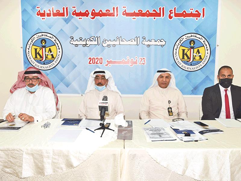اعتمدت الجمعية العمومية العادية لجمعية الصحافيين، أمس الأول، بالإجماع، التقريرين الإداري والمالي لمجلس الإدارة عن عام 2019، والميزانية التقديرية لعام 2020، كما اعتمدت مكتب البزيع وشركاهم لتدقيق الحسابات لعام 2020، خلال الاجتماع الذي عُقد بمقرها المؤقت بمنطقة الشويخ الصناعية شارع الصحافة.وحضر الاجتماع عن الجمعية أمين السر عدنان الراشد، وأمين الصندوق جاسم كمال، وممثل وزارة الشؤون الاجتماعية ومراقب إدارة الجمعيات الأهلية ظافر العجمي، ومندوب مكتب البزيع لتدقيق الحسابات أحمد شعلان.