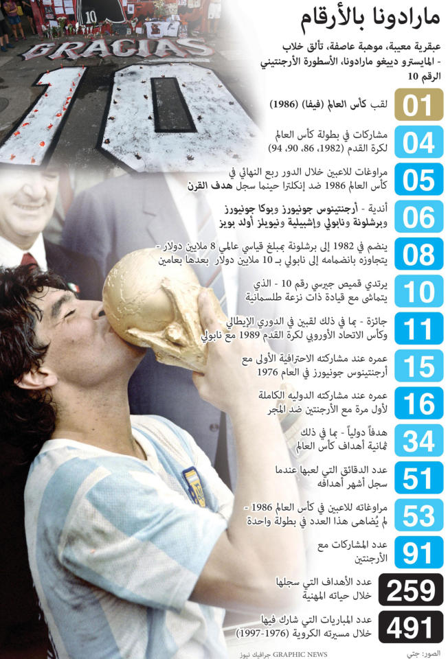 فيما يلي نبذة عن أسطورة الأرجنتين الذي توفي أمس الأول عن 60 عاماً نتيجة سكتة قلبية: