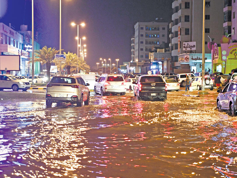 وأعلنت «الأرصاد»، في بيان لها، تأثر البلاد بسقوط امطار رعدية وغزيرة على بعض المناطق مصحوبة بنشاط للرياح تزيد سرعتها على 50 كيلومتر وأدت الى انخفاض الرؤية الافقية، وارتفاع الامواج لاكثر من 6 أقدام.وبالتزامن مع الأجواء الماطرة استنفرت فرق الاشغال والجهات الحكومية المعنية جهودها لمعالجة تجمعات للمياه في عدد من المناطق الداخلية واخرى في الفروانية والجهراء. وتفاعلاً مع الأوضاع وسوء الأحوال الجوية التي تمرّ بها البلاد، تفقدت وزيرة الأشغال العامة وزيرة الدولة لشؤون الإسكان، د. رنا الفارس، محافظة الجهراء للاطلاع على الأوضاع هناك والوقوف على جهود فرق الطوارئ وجهودها في الحد من آثار ارتفاع منسوب المياه نتيجة للأمطار التي تهطل، والتي حذرت منها إدارة الأرصاد الجوية ووزارة الأشغال والهيئة العامة للطرق والنقل البري سابقاً.ونشرت الوزارة فرق الطوارئ التابعة للتعامل مع أي تجمعات مياه نتيجة الأمطار الغزيرة التي تشهدها البلاد. وأوضحت مصادر مطلعة أن مسؤولي الوزارة وهيئة الطرق يتابعان مع بقية الجهات المعنية تفعيل خطة الطوارئ التي تم وضعها في حال هطول أمطار غزيرة على البلاد. ولفتت مصادر البلدية إلى أنه بتعليمات من المدير العام احمد المنفوحي ابلغت جميع مراكز البلدية في المحافظات أن تكون على استعداد لمساندة الجهات الحكومية في عمليات الانقاذ.من جهتها، دعت قوة الإطفاء العام المواطنين والمقيمين إلى توخي الحيطة والحذر بسبب عدم استقرار الحالة الجوية في البلاد.وأكدت «الإطفاء»، في بيان، أن جميع مراكزها رفعت جاهزيتها للتعامل مع أي بلاغات متعلقة بالحالة الجوية، داعية الجميع إلى عدم التردد بالاتصال على هاتف الطوارئ (112) للابلاغ عن الحالات الطارئة والإنسانية.وأعلنت «الداخلية» و«الإطفاء» تلقي 130 بلاغاً خلال عاصفة الامطار منها 128 بلاغا في منطقة الجهراء عن غرق مركبات اضافة الى بلاغين من منطقتي الدعية، كما سُجل تجمع للمياه على الدائري الخامس باتجاه الجهراء قبالة منطقة الاندلس.من جهته، أعلن مسؤول العلاقات العامة والتواصل الاجتماعي في «الإطفاء» النقيب رضا السلمان رفع مستوى الاستنفار والتأهب تحسباً لأي طارئ.