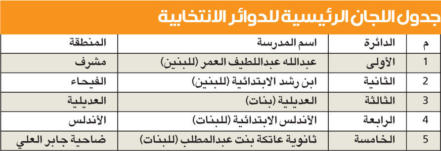 وزارة الداخلية: 5 لجان انتخابية للذكور و5 للإناث