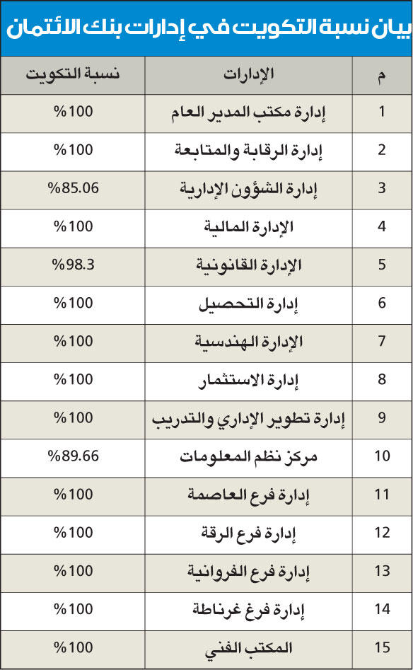 حباري الخشتي: نسبة التكويت 100% في 97% من إدارات البنك