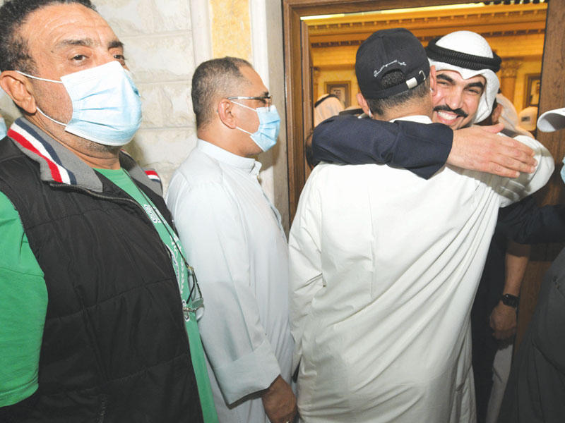 عبدالكريم الكندري متلقياً التهنئة بالفوز