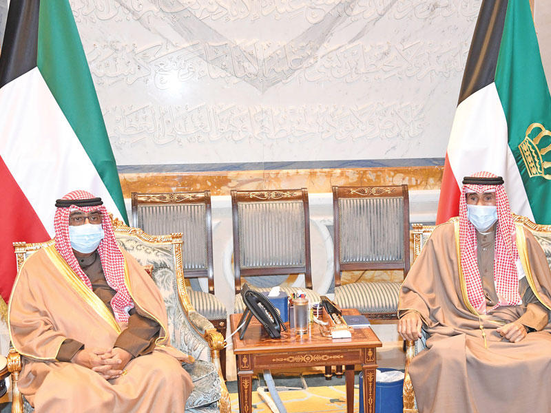 استقبل صاحب السمو أمير البلاد الشيخ نواف الأحمد بقصر بيان صباح أمس سمو ولي العهد الشيخ مشعل الأحمد.واستقبل صاحب السمو أمس رئيس مجلس الوزراء سمو الشيخ صباح الخالد حيث رفع إلى مقام سموه كتاب استقالة الحكومة وجاء فيه: صدر الأمر السامي بتاريخ 19 نوفمبر 2019 بتعييني رئيسا لمجلس الوزراء ثم صدر المرسوم رقم 290 لسنة 2019 وتعديلاته بتشكيل الوزارة وتكليفي والأخوة الوزراء بحمل أمانة العمل الوزاري في هذه الفترة الهامة من تاريخ وطننا الحبيب.