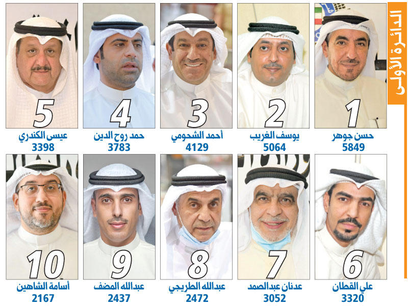 1- حسن جوهر - 5849 صوت2- يوسف الغريب - 5064 صوت3- أحمد الشحومي - 4129 صوت4- حمد روح الدين - 3783 صوت5- عيسى الكندري - 3398 صوت6- علي القطان - 3320 صوت7- عدنان عبدالصمد - 3052 صوت8- عبدالله الطريجي - 2472 صوت9- عبدالله المضف - 2437 صوت10- أسامة الشاهين - 2167 صوت