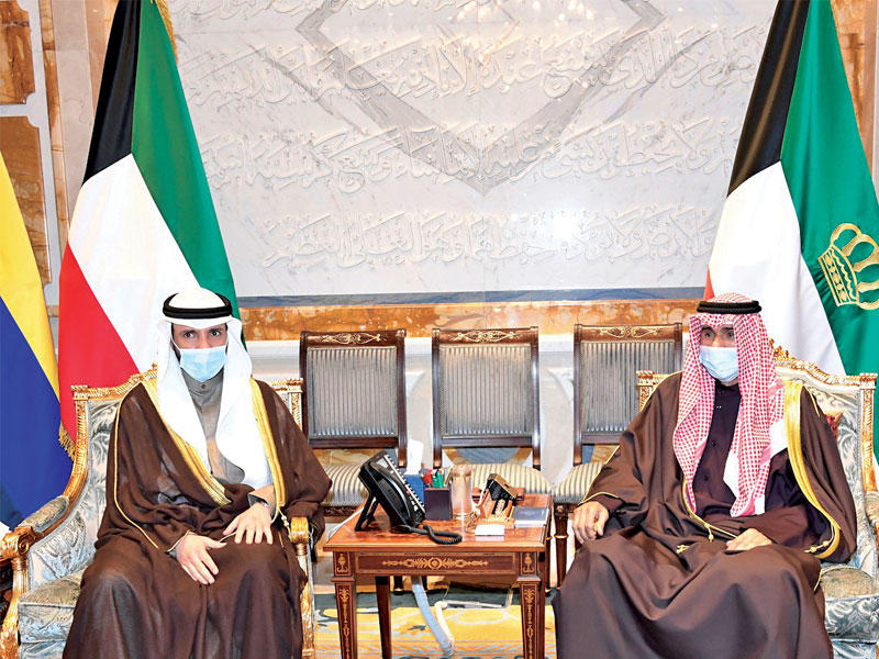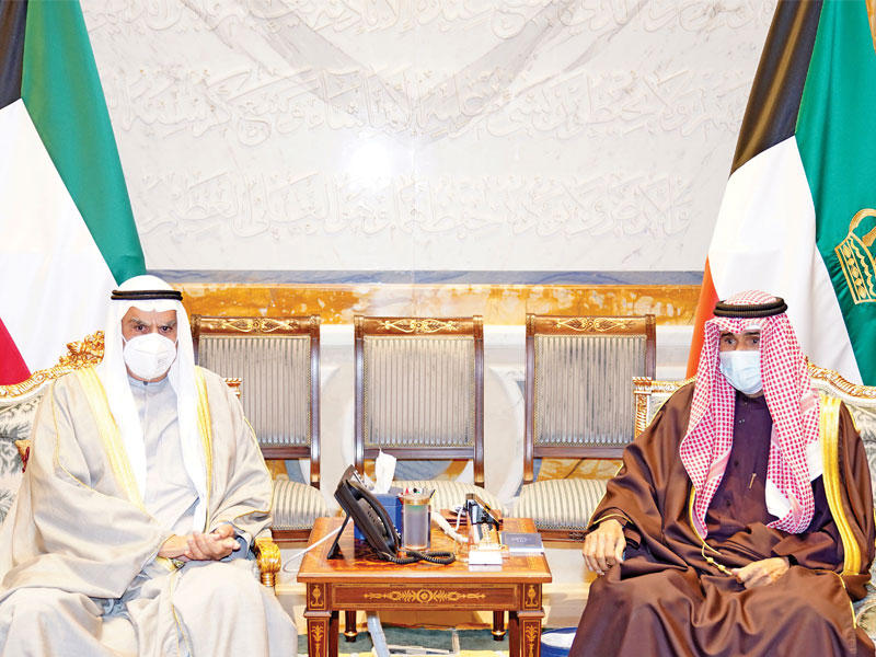 صاحب السمو أمير البلاد الشيخ نواف الأحمد الصباح مستقبلاً رئيس مجلس الأمة مرزوق الغانم