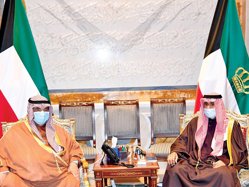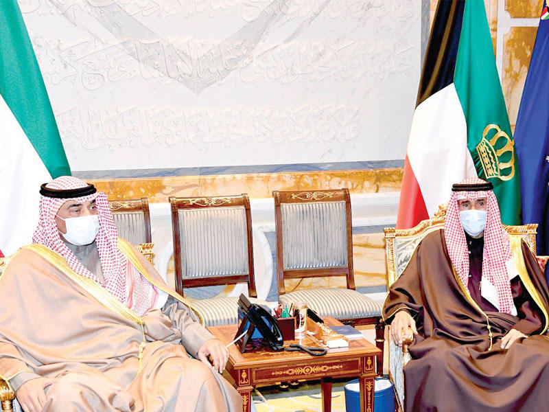 صاحب السمو أمير البلاد الشيخ نواف الأحمد الصباح مستقبلاً رئيس مجلس الوزراء سمو الشيخ صباح الخالد
