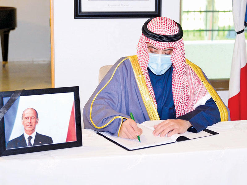 قدم وزير الخارجية وزير الإعلام بالوكالة الشيخ د. أحمد الناصر واجب العزاء لحكومة وشعب فرنسا بوفاة الرئيس الأسبق فاليري جيسكار ديستان.وأعرب وزير الخارجية، في كلمة خطها في سجل التعازي بمقر السفارة الفرنسية لدى الكويت، أمس، عن خالص مشاعر العزاء وصادق المواساة بهذا المصاب الجلل، مستذكرا في هذا الموقف المؤلم مناقب الفقيد الحميدة وإسهاماته في خدمة وطنه بالعديد من الميادين ومسيرته الحافلة ودوره البارز في قيادة دفة الاقتصاد والتنمية في فرنسا، مستحضرا وبكل اعتزاز وتقدير ما حققه الفقيد من تعزيز للأواصر الكويتية الفرنسية التاريخية التي باتت نموذجا للعلاقات المتينة بين الدول.