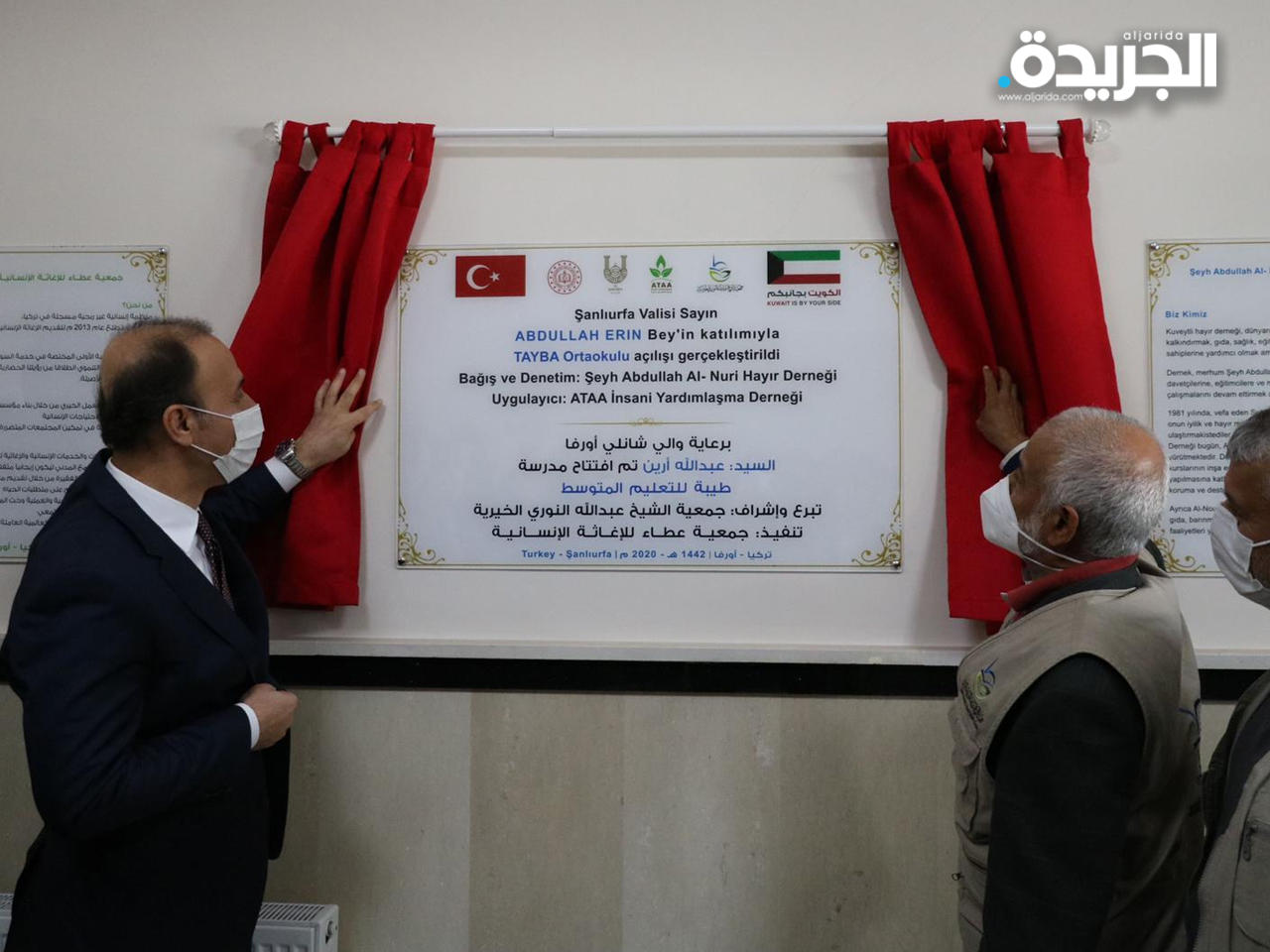 وأوضح أن دولة الكويت استضافت مؤتمر المانحين الخاص بالأزمة السورية في ثلاث مناسبات وقدمت تبرعات انسانية من أجل إغاثة الشعب السوري.وأعرب عن شكره للحكومة التركية وجمعية «عطاء» للإغاثة الإنسانية التركية على مساهمتهما في تشييد مدرسة «طيبة»، متمنياً أن تستمر هذه الأنشطة الانسانية بشكل متزايد. من جانبه، أعرب محافظ «شانلي أورفا» عبدالله ايرن عن شكره لجمعية عبدالله النوري وجمعية «عطاء» على جهودهما في بناء المدرسة.وأشاد ايرن في كلمة مماثلة بالدعم الذي تقدمة الجمعيات والمؤسسات الكويتية للسوريين في «شانلي أورفا»، مؤكداً عمق الصداقة بين تركيا ودولة الكويت والحاجة الماسة إلى بناء مزيد من المدارس لاستيعاب أكبر قدر ممكن من الطلبة اللاجئين في المدينة.بدوره، قال مدير ادراة التعليم بجمعية «عطاء» عبدالرحمن الشردوب أن المدرسة التي تستوعب 816 طالباً تتكون من أربعة طوابق وتحتوي على 24 فصلاً دراسياً بالإضافة إلى المرافق الإدارية والخدمية.وأشاد الشردوب في كلمة مماثلة بدور دولة الكويت الكبير في دعم السوريين في مختلف مجالات العمل الإنساني خصوصاً في قطاع التعليم.وأثنى أيضاً على جهود جمعية الشيخ عبدالله النوري في إنشاء المدارس بالداخل السوري وتركيا، كما لها السبق في انشاء أول معهد مهني للطلبة السوريين في منطقة المخيمات في داخل سوريا.وأضاف أن الجمعية كانت من أوائل الجمعيات التي تبنت فكرة مشروع «مدرستي معي» في المخيمات العشوائية، حرصاً منها على استمرار التعليم للأطفال السوريين في ظل موجات النزوح الأخيرة، كاشفاً عن أن الجمعية تعتزم بناء أول مدرسة للتعليم المهني في «شانلي أورفا».
