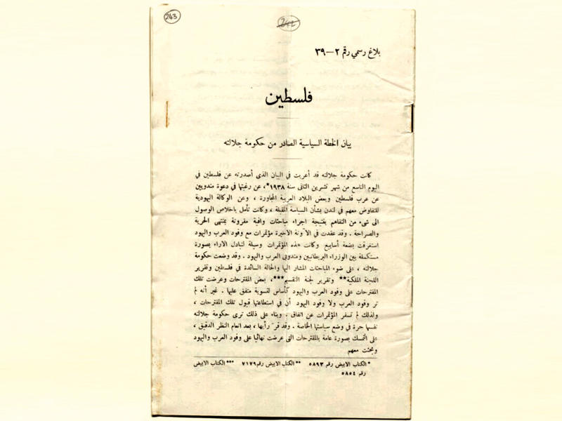 وثيقة لها تاريخ: «الكتاب الأبيض» وثيقة سياسية بريطانية لتحديد مستقبل فلسطين عام 1939م
