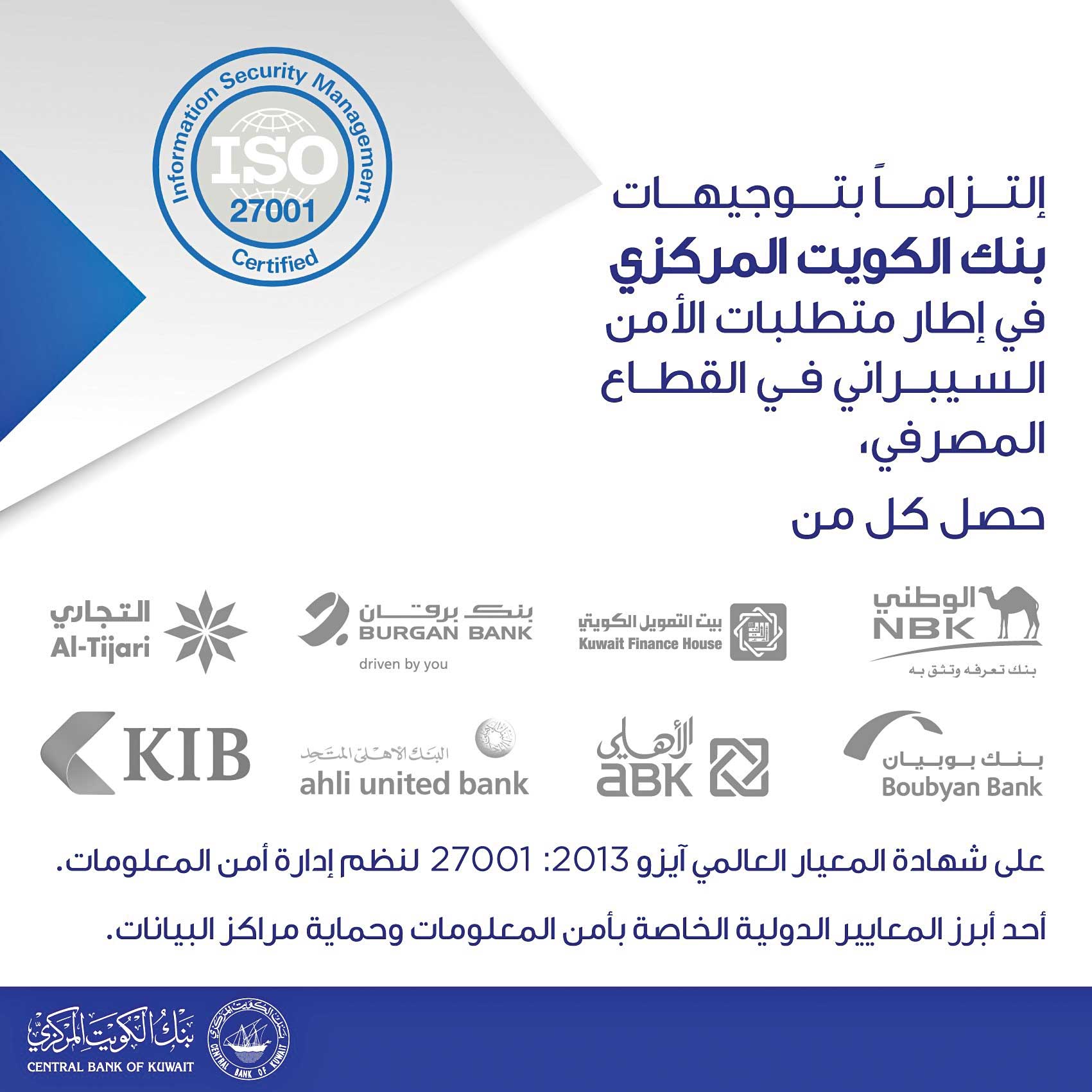 بنك الكويت المركزي: آيزو 2013: 27001 لبنوك كويتية