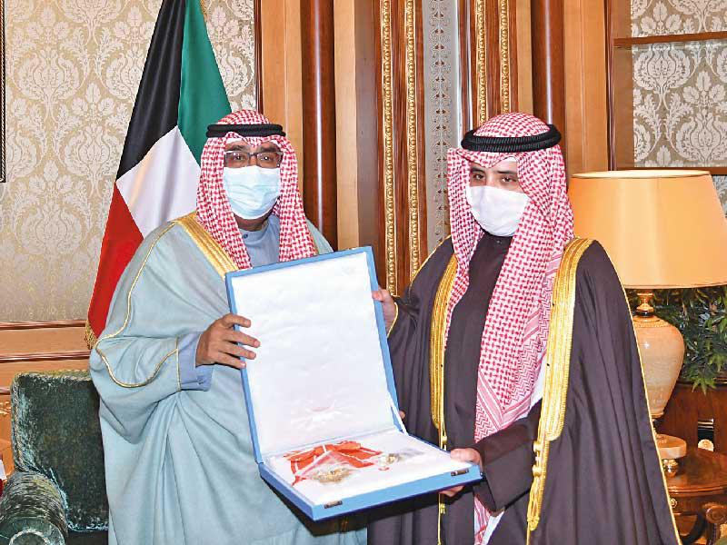 الأمير يمنح الشيخ د. أحمد الناصر وسام الكويت ذا الوشاح من الدرجة الأولى