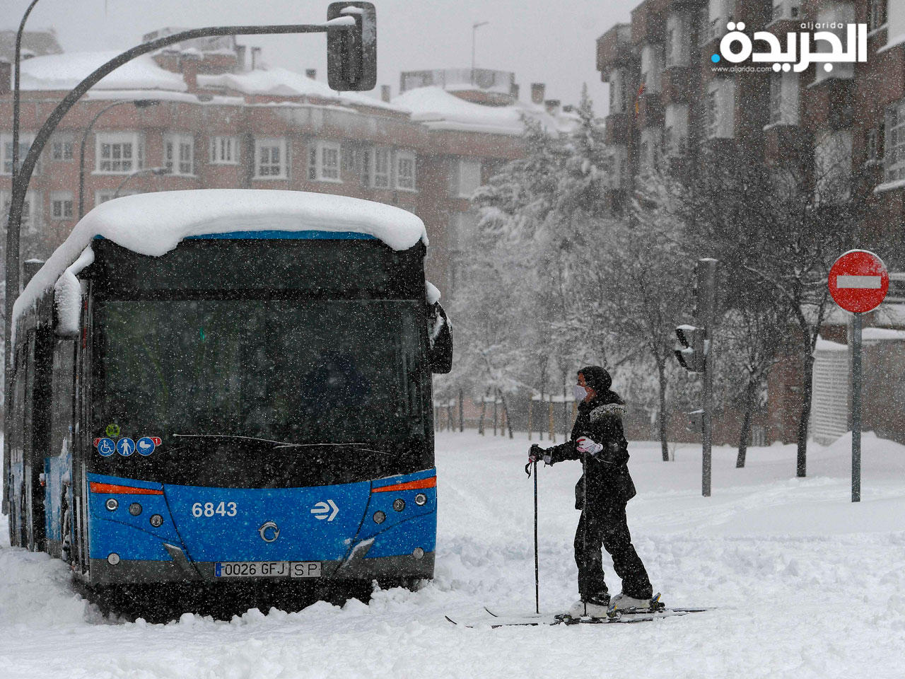 وصرح وزير الداخلية فرناندو غراندي مارلاسكا خلال مؤتمر صحافي «إن كان عدد الحوادث محدوداً نسبياً على الرغم من الظروف الجوية البالغة الصعوبة، فإننا نأسف لوفاة ثلاثة أشخاص».وأحد الضحايا الثلاث رجل عثر عليه مطموراً تحت الثلج في ثارثاليخو إلى شمال غرب مدريد، على ما أوضح الوزير، فيما قضى الآخران وهما يحاولان عبور نهر في ميخاس قرب ملقة في الجنوب، حيث كانت تتساقط أمطار غزيرة، على ما أوضح وزير الداخلية.وقال وزير الداخلية أن فرق الاسعاف وكاسحات الثلوج التابعة للجيش أغاثت جميع سائقي السيارات الـ2500 الذين حاصرتهم الثلوج على الطرقات.وشدد الوزير على أن «الثلوج ستتحول إلى جليد» في الأيام المقبلة فيما تترقب الأرصاد الجوية أن تستمر موجة البرد التي تسجل عشر درجات تحت الصفر حتى يوم الخميس.وعمت مشكلات السير حوالي عشرين ألف كلم على 650 طريقاً وجسراً.ورغم ذلك حرص وزير الداخلية على الطمأنة حول سير حملة التلقيح، فأكد أنه سيتم توزيع جرعات اللقاح الجديدة الـ350 ألفاً التي يتوقع تسلّمها الإثنين.وغطت مدريد طبقة كثيفة من الثلج لم تشهدها العاصمة منذ نصف قرن، فشوهدت شلوح أشجار أرضاً تحت تأثير الثلج والرياح، وسيارات متروكة في وسط الطريق، فيما أخرج البعض زلاجاتهم للتزحلق في أماكن مثل ساحة لا بويرتا ديل سول حيث عبرت حتى زلاجة تجرها خمسة كلاب، بحسب صور التقطتها وكالة فرانس برس.