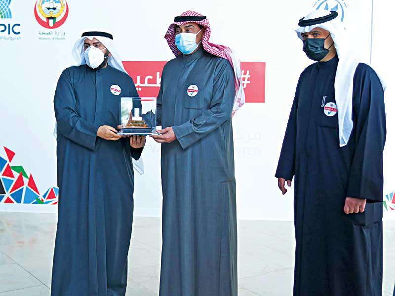 تلقى رئيس مجلس الوزراء سمو الشيخ صباح الخالد، أمس، الجرعة الثانية من لقاح "كوفيد 19"، ضمن الحملة الوطنية للتطعيم في مركز الكويت للتطعيم بمعرض الكويت الدولي، بقاعة 6.وقبل مغادرة سمو رئيس مجلس الوزراء أرض المعارض، قدم وزير الصحة الشيخ د. باسل الصباح لسموه درعاً تذكارية، عقب تلقي سموه الجرعة الثانية من اللقاح. من جهته، قال نائب رئيس مجلس الوزراء ووزير الدولة لشؤون مجلس الوزراء أنس الصالح: "ندعو الجميع إلى التسجيل في منصة الحجز المسبق للتطعيم".من جانبه، أعلن وزير الصحة أن عدد من تلقى الجرعة الأولى من لقاح "كوفيد 19" تعدى الـ20 ألف شخص، لافتاً إلى أن عدد من سجل على منصة الطعوم حتى الآن بلغ ما يقارب من 250 ألفاً من جميع أطياف المجتمع، داعياً بقية المواطنين والمقيمين الى التسجيل لحفظ دورهم في أخذ التطعيم.