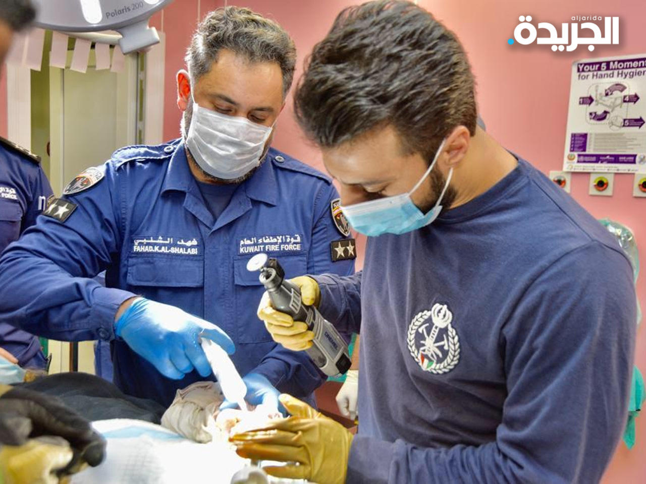 وأضاف أنه وعند وصول رجال الإطفاء ومعاينة الحادث تبين أن المصابة تحتاج إلى عناية طبية فتم إرسالها عن طريق الطوارئ الطبية وفرقة الإطفاء إلى مستشفى الجهراء وتم ادخالها إلى غرفة العمليات الصغرى، مشيراً إلى أن غرفة العمليات وجهت فرقة إطفاء مركز الإنقاذ الفني للعمل على إخراج يد المواطنة بالتعاون والتنسيق مع أطباء الجراحة بالمستشفى وبعناية ودقة لعدم حصول أي مضاعفات.وذكر الغريب أن رجال الإطفاء استخدموا معدات خاصة ودقيقة لقطع الأجسام المعدنية، وتمكنوا من إخراج يد المواطنة بعد عملية مضنية ودقيقة، لافتاً إلى أن الطاقم الطبي المختص باشر بإجراء اللازم لعلاجها.