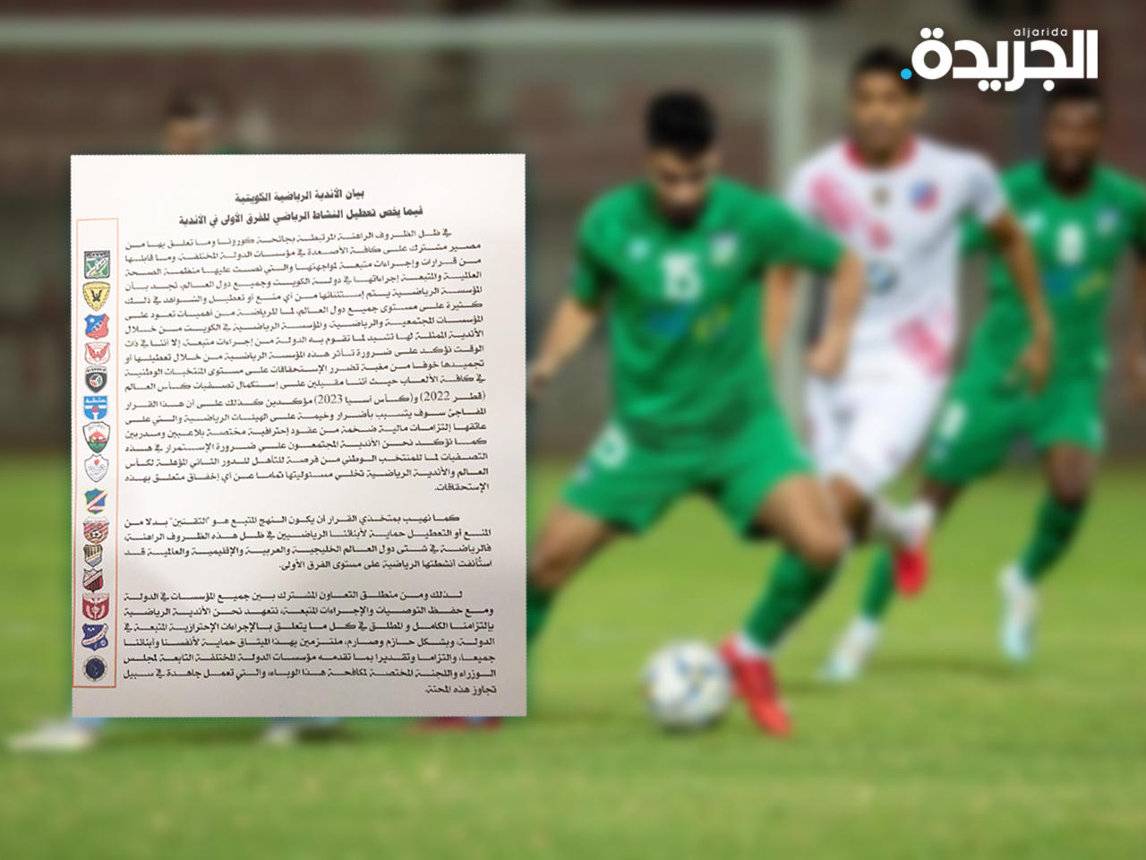 وجاء في البيان الأندية «في ظل الظروف الراهنة المرتبطة بجائحة كورونا وما تعلق بها من مصير مشترك على كافة الأصعدة في مؤسسات الدولة المختلفة، وما قابلها من قرارات وإجراءات متبعة لمواجهتها والتي نصت عليها منظمة الصحة العالمية والمتبعة إجراءاتها في دولة الكويت وجميع دول العالم، نجد بأن المؤسسة الرياضية يتم إستثنائها من أي منع أو تعطيل والشواهد في ذلك كثيرة على مستوى جميع دول العالم، لما للرياضة من أهميات تعود على المؤسسات المجتمعية والرياضية، والمؤسسة الرياضية في الكويت من خلال الأندية الممثلة لها تشيد لما تقوم به الدولة من إجراءات متبعة، إلا أننا في ذات الوقت نؤكد على ضرورة تأثر هذه المؤسسة الرياضية من خلال تعطيلها أو تجميدها خوفا من مغبة تضرر الإستحقاقات على مستوى المنتخبات الوطنية في كافة الألعاب حيث أننا مقبلين على إستكمال تصفيات كأس العالم «قطر 2022» و«كأس آسيا 2023» مؤكدين ك ذلك على أن هذا القرار المفاجئ سوف يتسبب بأضرار وخيمة على الهيئات الرياضية والتي على عاتقها إلتزامات مالية ضخمة من عقود إحترافية مختصة بلاعبين ومدربين كما نؤكد نحن الأندية المجتمعون علي ضرورة الإستمرار في هذه التصفيات لما للمنتخب الوطني من فرصة للتأهل للدور الثاني المؤهلة لكأس العالم والأندية الرياضية تخلي مسئوليتها تماما عن أي إخفاق متعلق بهذه الاستحقاقات.